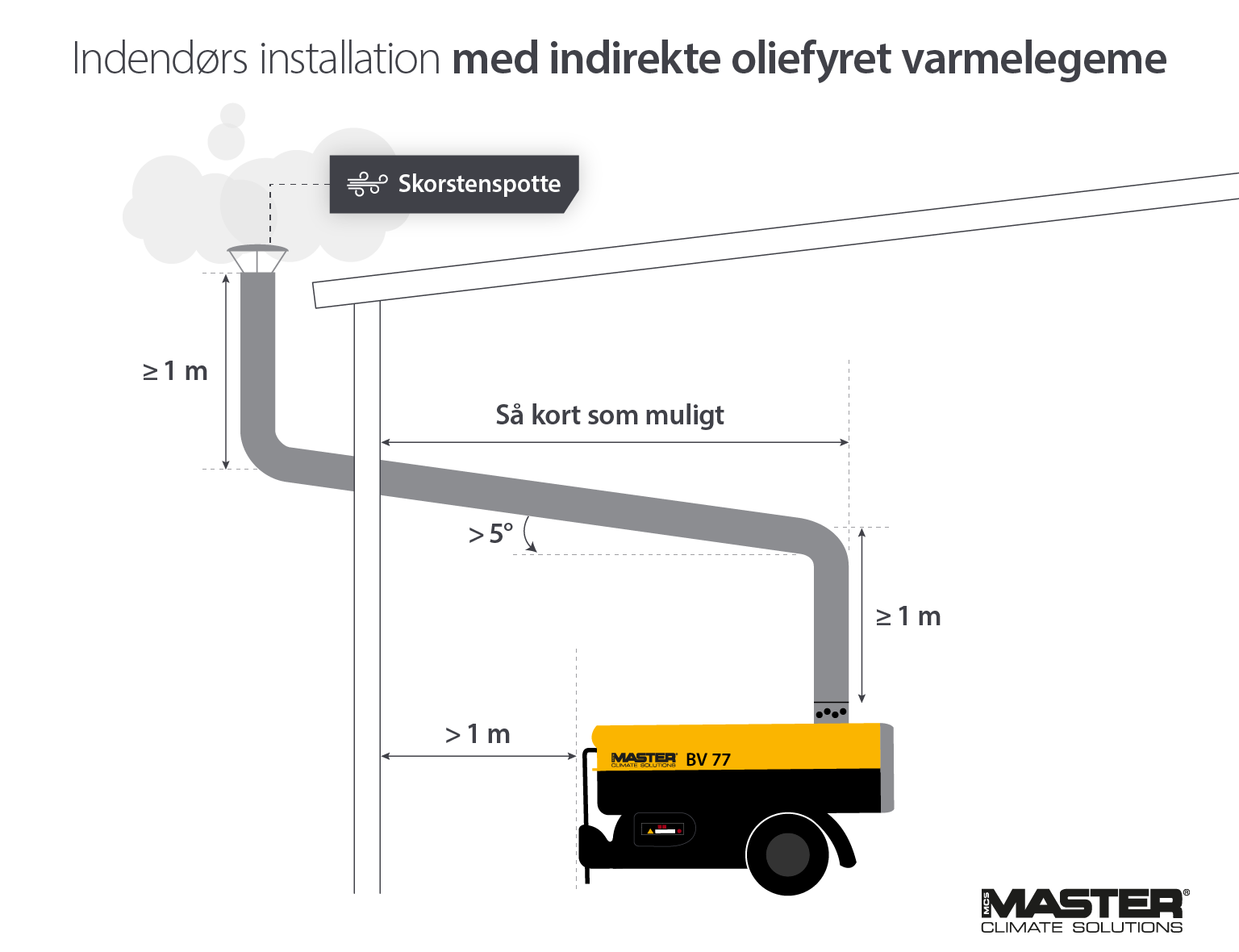 Det maksimerer pladsen og holder udstyret ude af syne. Indirekte oliefyrede varmeapparater kan installeres indendørs, men disse er typisk egnede til betydeligt større rum.
