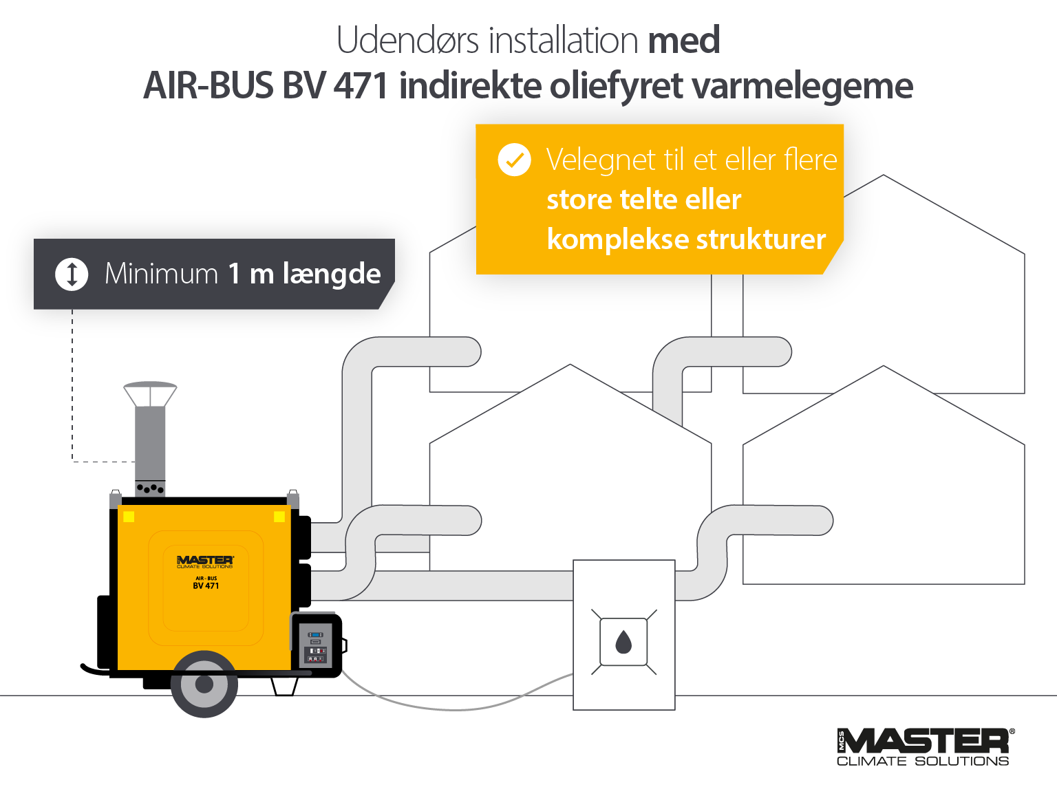 Højkvalitetsapparater fra Master er transportable, holdbare og vejrbestandige under selv de mest ekstreme forhold. Det betyder, at de ikke har problemer med at køre uden for teltet eller pavillonen i dårligt vejr, mens de blæser varm luft ind i teltet via fleksible kanaler, der er nemme at montere.