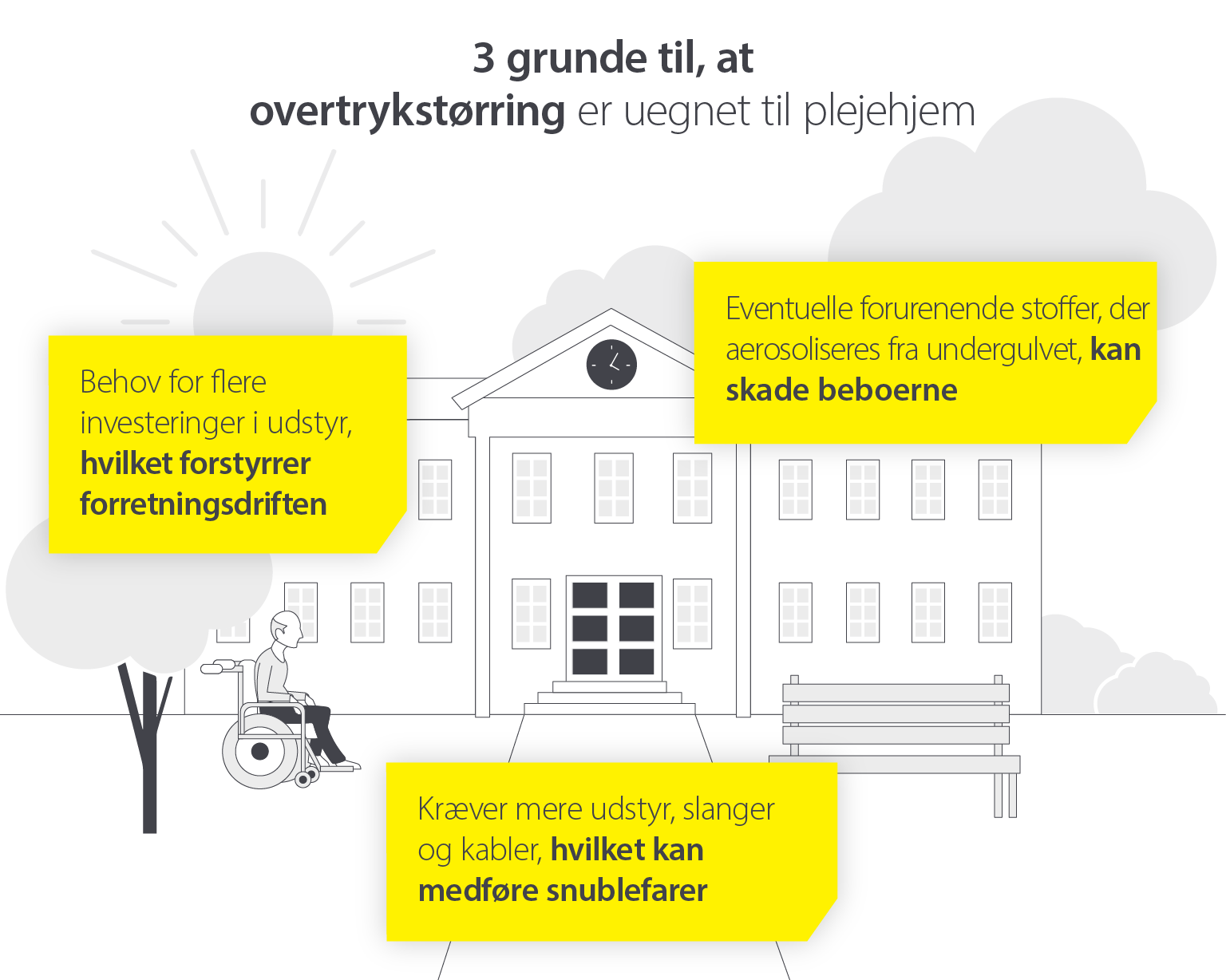 Ud over at gå på kompromis med komforten for dem, der bor og arbejder i ejendommen, kan tørring med overtryk også udgøre en større risiko for beboernes sundhed og velbefindende, især dem, der er mere sårbare.