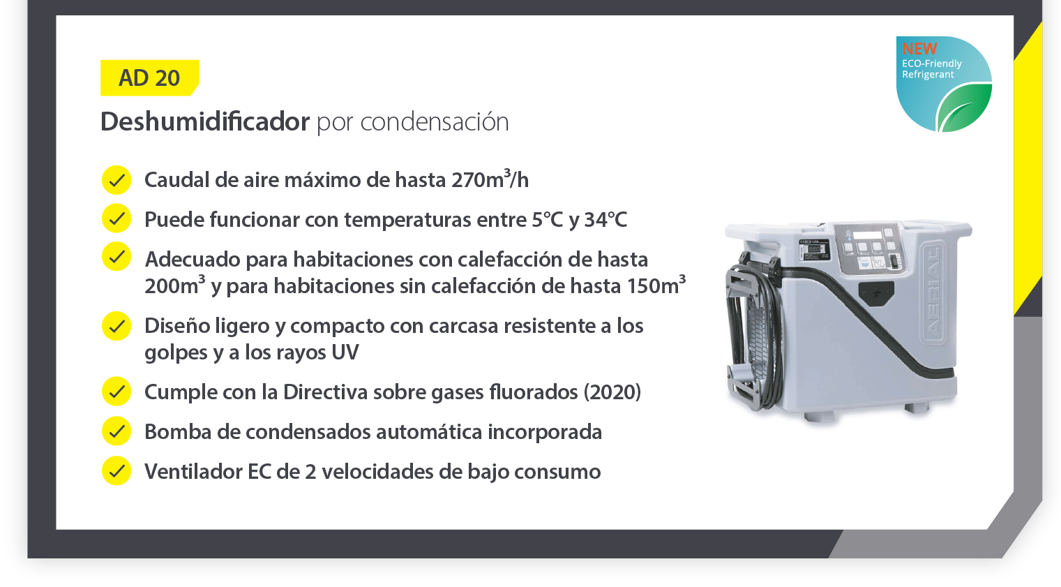 Unidades como la AD 20 no sólo son deshumidificadores por condensación eficaces, sino que también son fáciles de mantener, están fabricadas para durar y son muy eficientes desde el punto de vista energético, lo que resulta ideal para muchas situaciones.