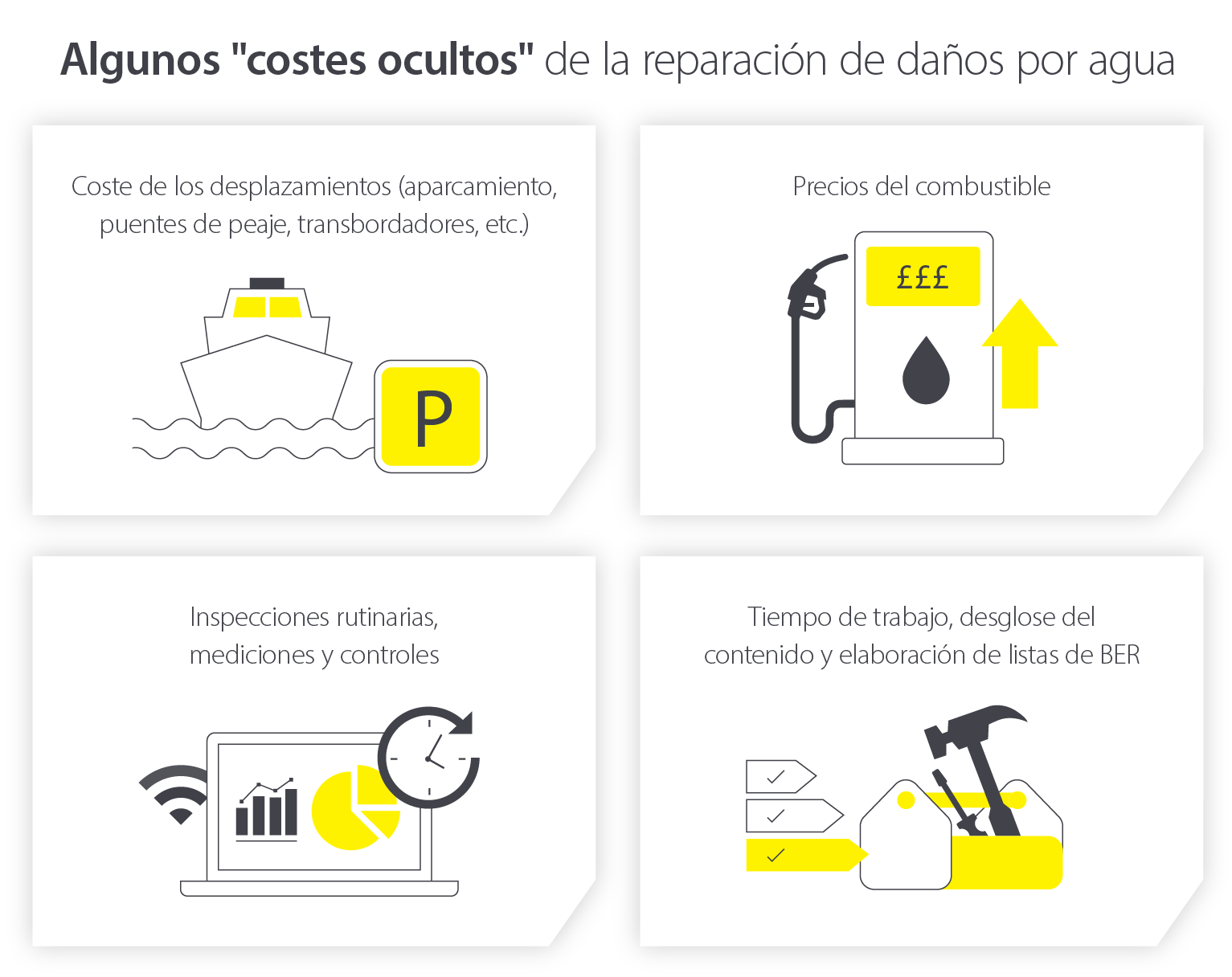 No existe una respuesta definitiva al coste de un siniestro por daños causados por el agua. En los inmuebles domésticos, las aseguradoras suelen basarse en el número de habitaciones afectadas y el alcance de los daños.