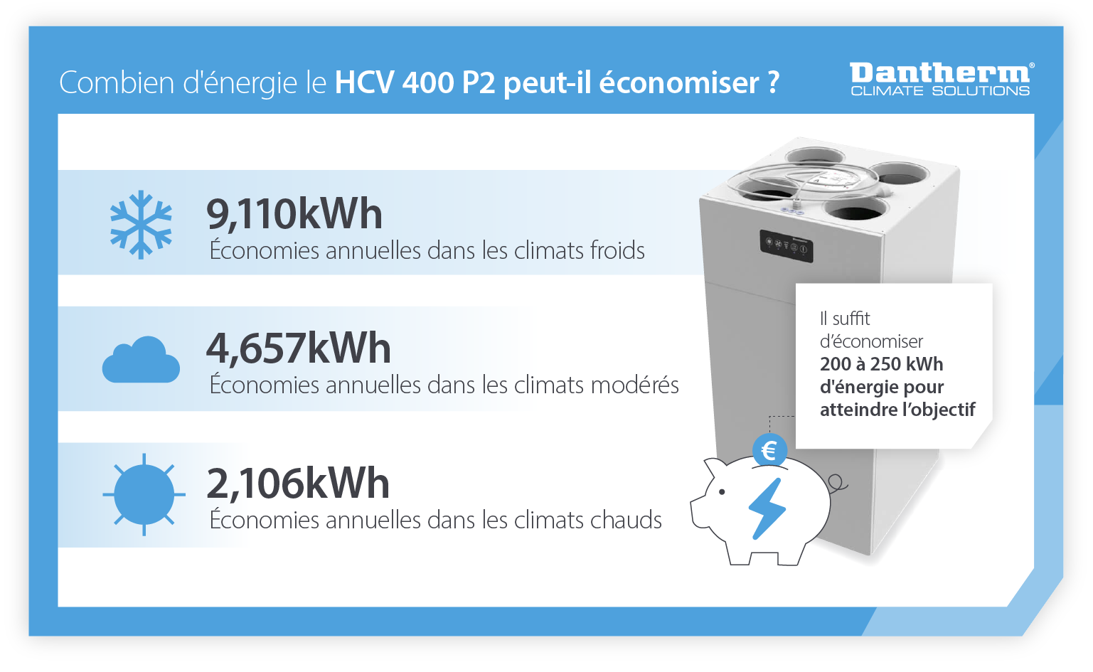 En faisant fonctionner efficacement la ventilation résidentielle et en récupérant la chaleur avec une consommation d'énergie minimale, les factures d'énergie peuvent être réduites de manière significative, permettant aux propriétés d'économiser entre 4 000 et 6 000 kWh en moyenne chaque année.