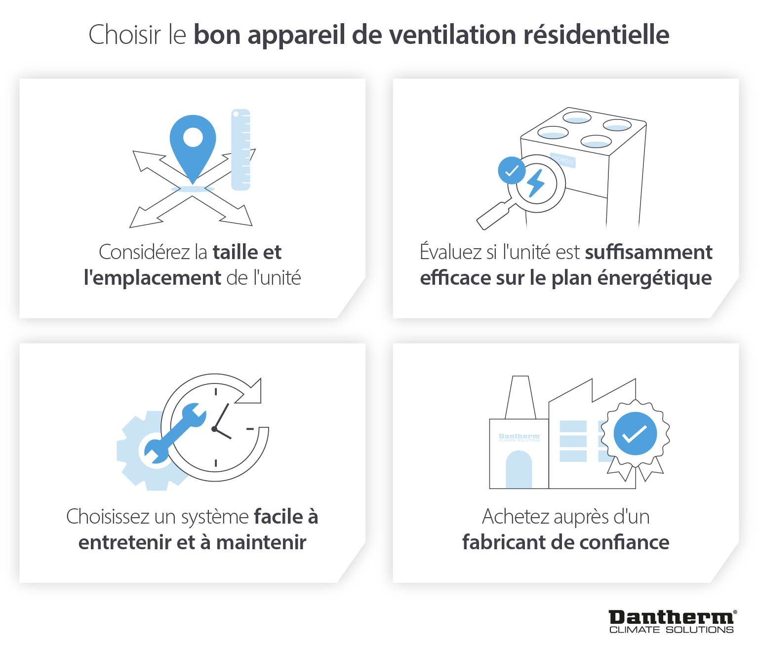 Outre la configuration des appareils en fonction des environnements spécifiques et l'éducation des résidents, il est également essentiel de sélectionner l'unité de ventilation résidentielle adéquate pour répondre aux besoins spécifiques d'un bâtiment et de ses résidents.
