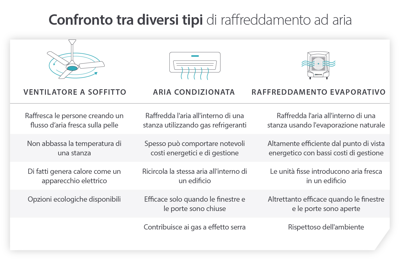 Mentre il raffreddamento evaporativo offre una serie di vantaggi distinti rispetto alle unità di aria condizionata tradizionali, come si pone questa tecnologia rispetto ai ventilatori elettrici o ai ventilatori a soffitto?