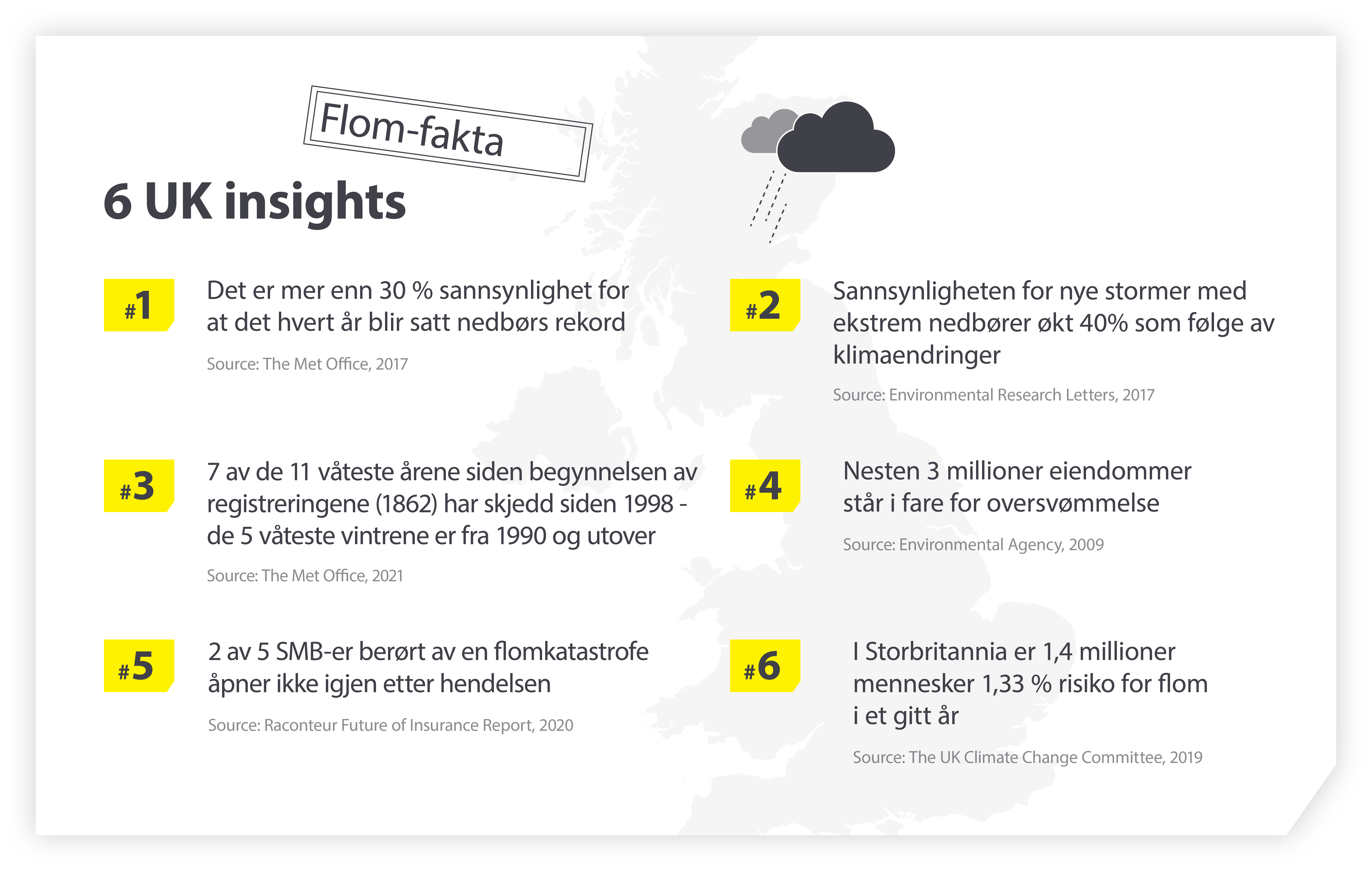 Dette gir et klart bilde av at risikoen for flom er mer utbredt nå enn i de siste tiårene – og dette gjelder også utenfor Storbritannia til andre områder i Europa og resten av verden.
