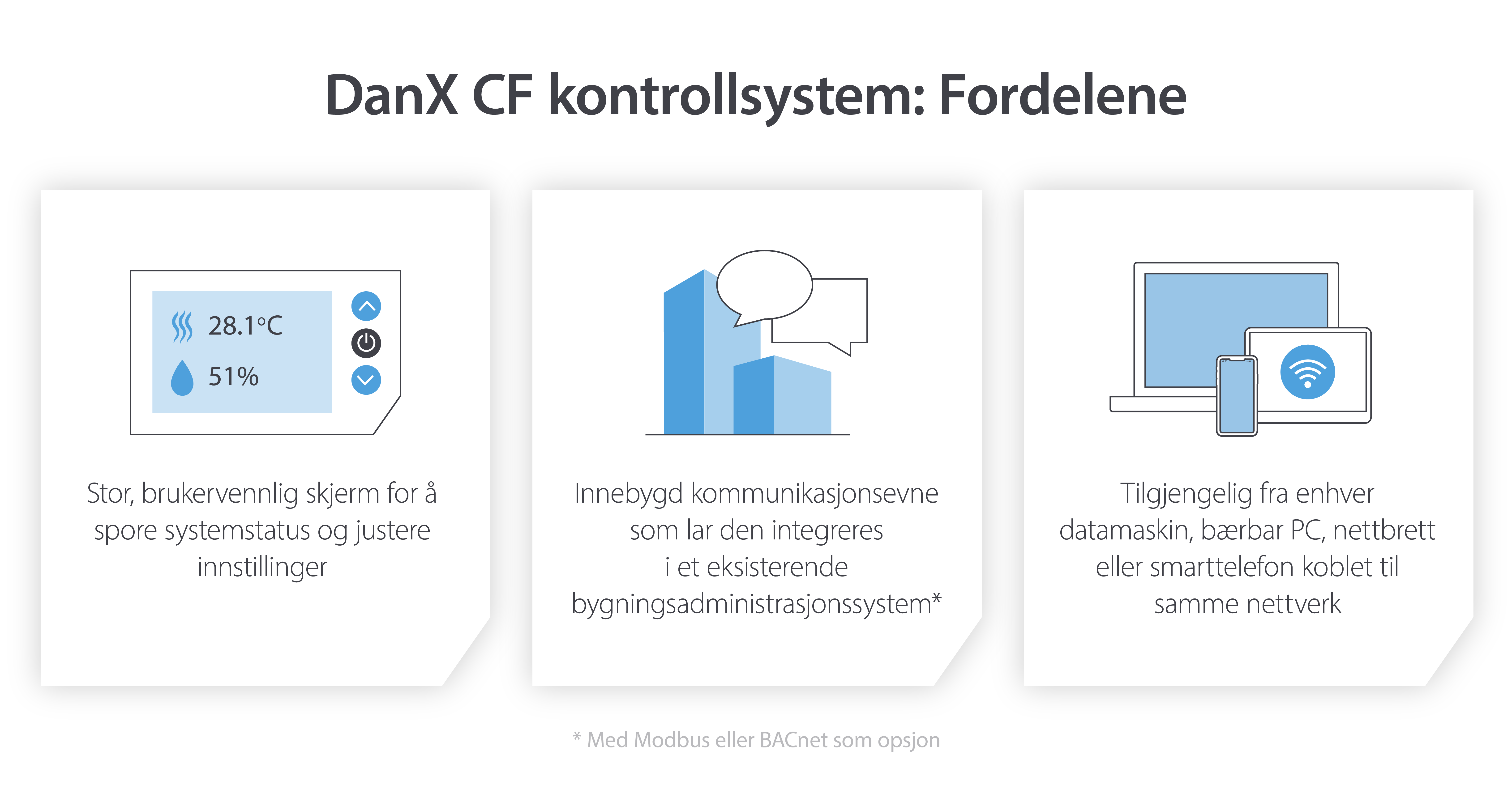 Alle DanX CF-løsninger leveres med et kontrollsystem som tar klimastyringen til et helt nytt nivå.