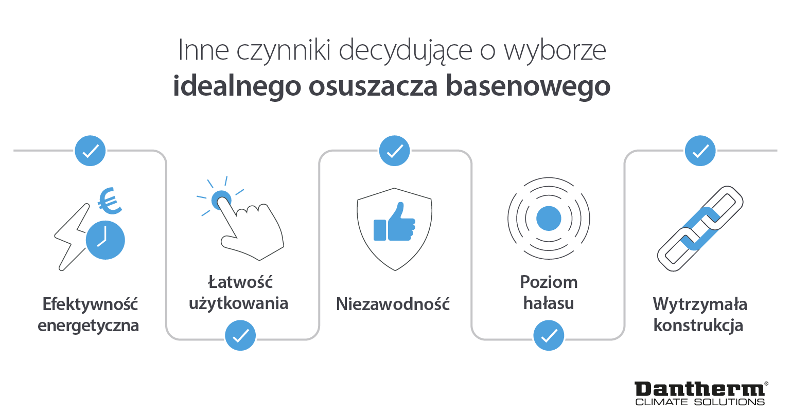 Pomimo tego, że istnieją specjalne osuszacze produkowane z myślą o środowisku basenowym, to nie wszystkie z nich konstruowane są w taki sam sposób. Dokonując wyboru optymalnego urządzenia, powinieneś także pamiętać o: