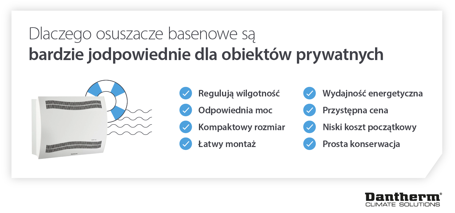 Zdecydowana większość basenów krytych i komercyjnych posiada dedykowany osuszacz lub centralę wentylacyjną, których zadaniem jest regulowanie poziomu wilgotności w pomieszczeniach.