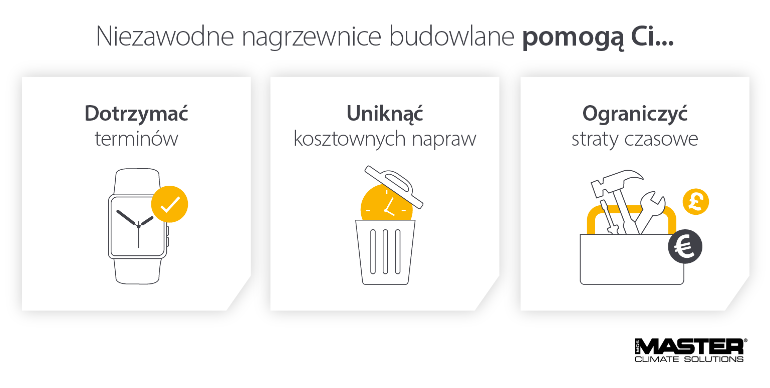Na placach budowy pracownicy podczas wykonywania swoich zadań muszą polegać na sprzęcie, który wykorzystują. Jednak w przypadku poważniejszych awarii maszyn opóźnienia mogą szybko doprowadzić do efektu kuli śnieżnej i poważnie zakłócić istniejące harmonogramy. Aby uniknąć kosztownych przestojów, potrzebne jest niezawodne urządzenie grzewcze.