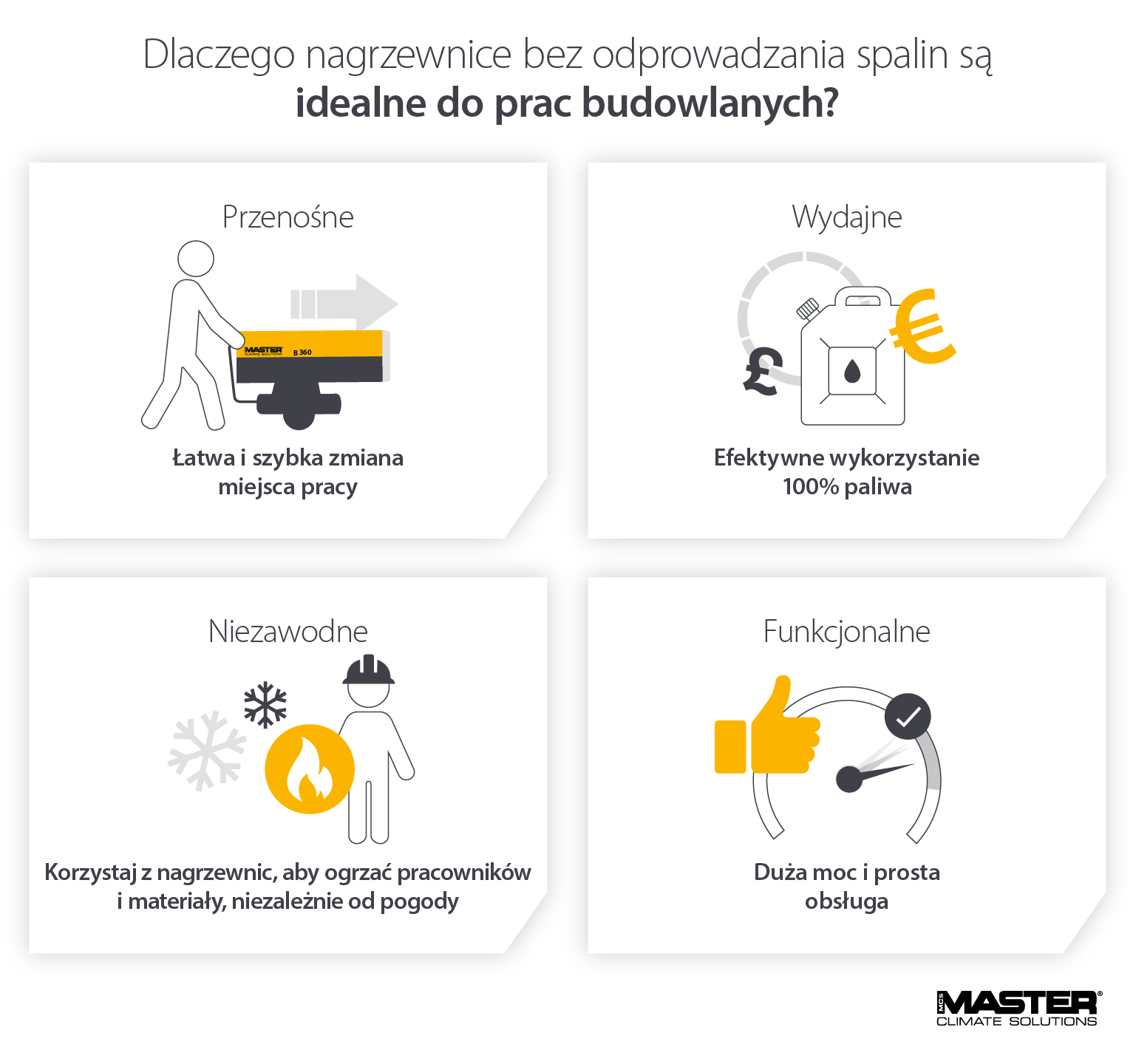 Master to niezawodny producent cieszący się zaufaniem w branży budowlanej na całym świecie, ponieważ nasza oferta gazowych i olejowych systemów grzewczych zapewnia: