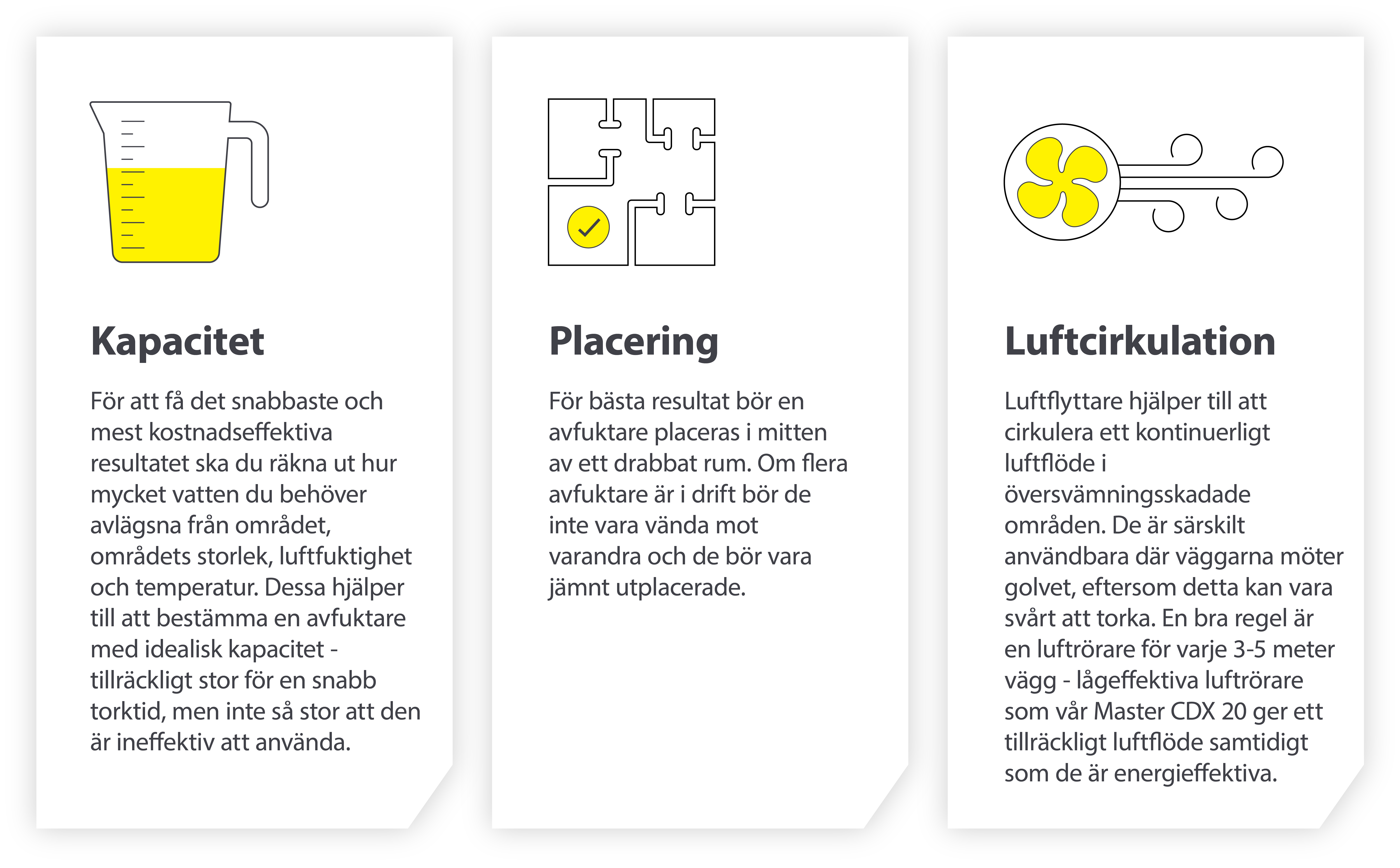 Sedan handlar det om att välja rätt avfuktningslösning och konfigurera den på rätt sätt för bästa resultat. Här är tre viktiga saker att tänka på:
