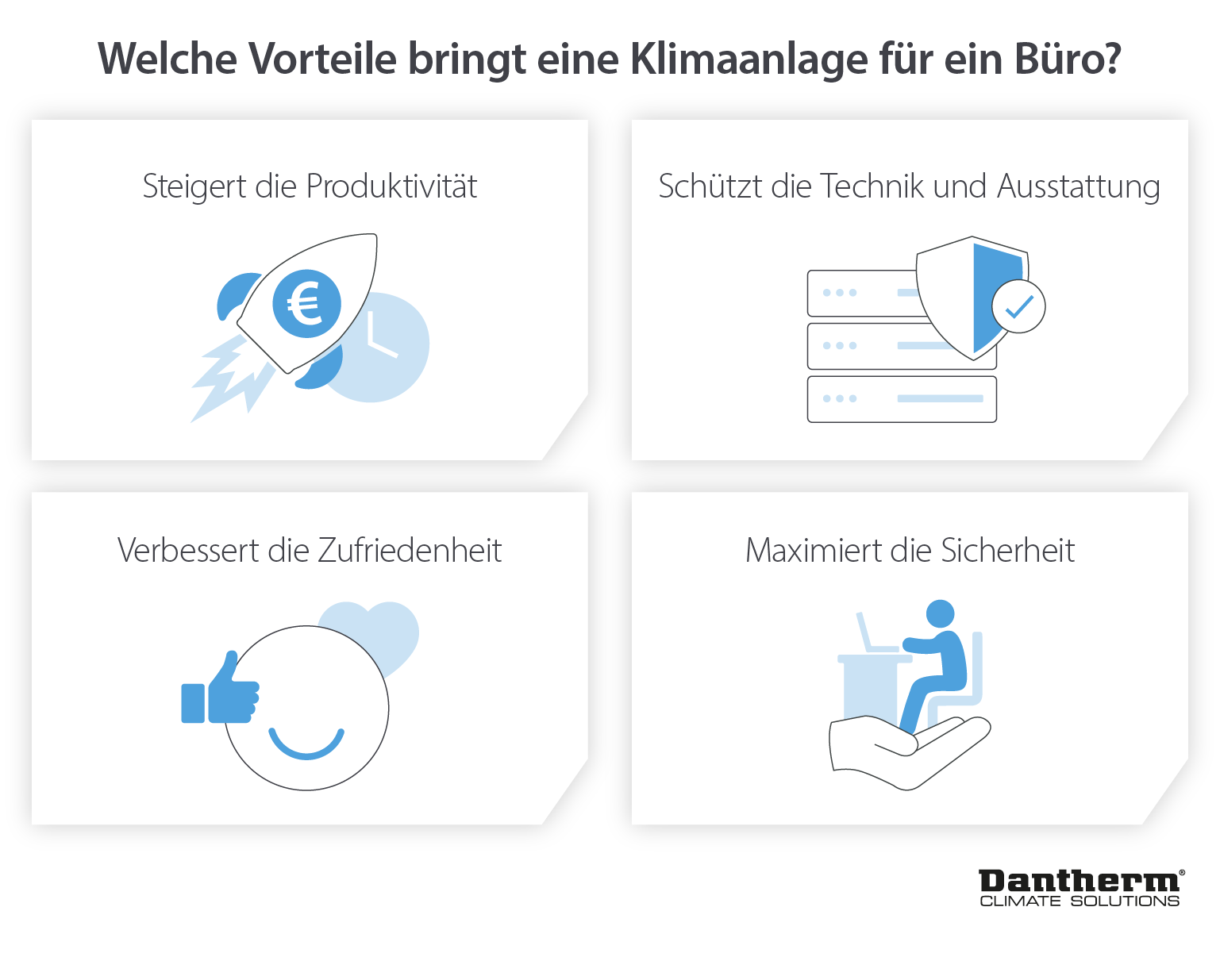 Durch den Einsatz von Klimaanlagen zur effektiven Kühlung von Räumen sind die Mitarbeiter weniger Ablenkungen ausgesetzt und können sich besser auf ihre Aufgaben konzentrieren. Dies erhöht die Geschwindigkeit und Qualität, mit der die Arbeit erledigt wird, und steigert die Produktivität der Mitarbeiter.
