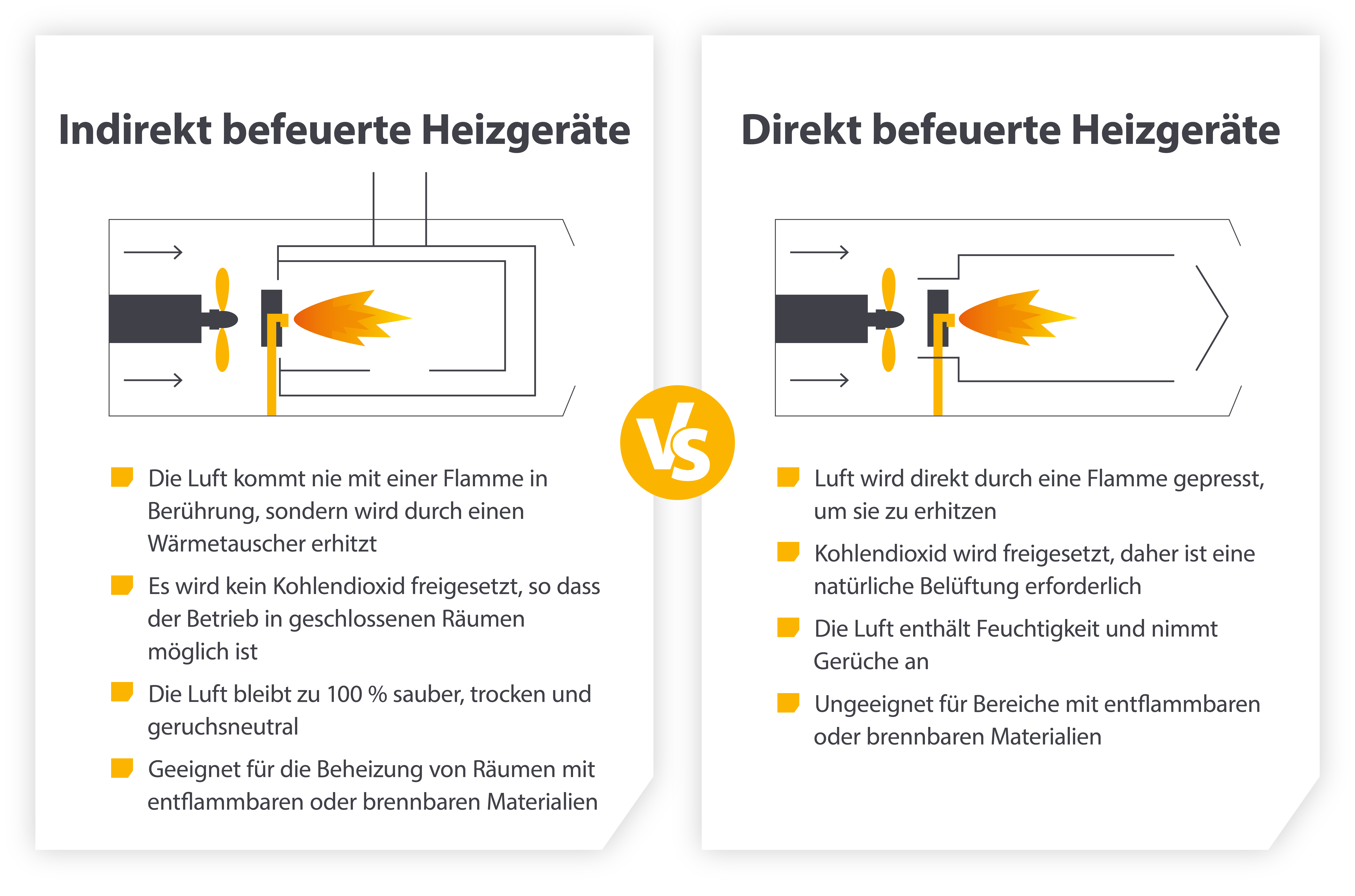 Ein Heizgerät muss nicht nur das richtige Klima für Flüchtlinge und andere Bewohner schaffen können, sondern auch sicher im Betrieb sein. Wenn Gase aus der Brennkammer entweichen und in die Räumlichkeiten gelangen, bringt dies sofort die Gesundheit der Personen in ernsthafte Gefahr.