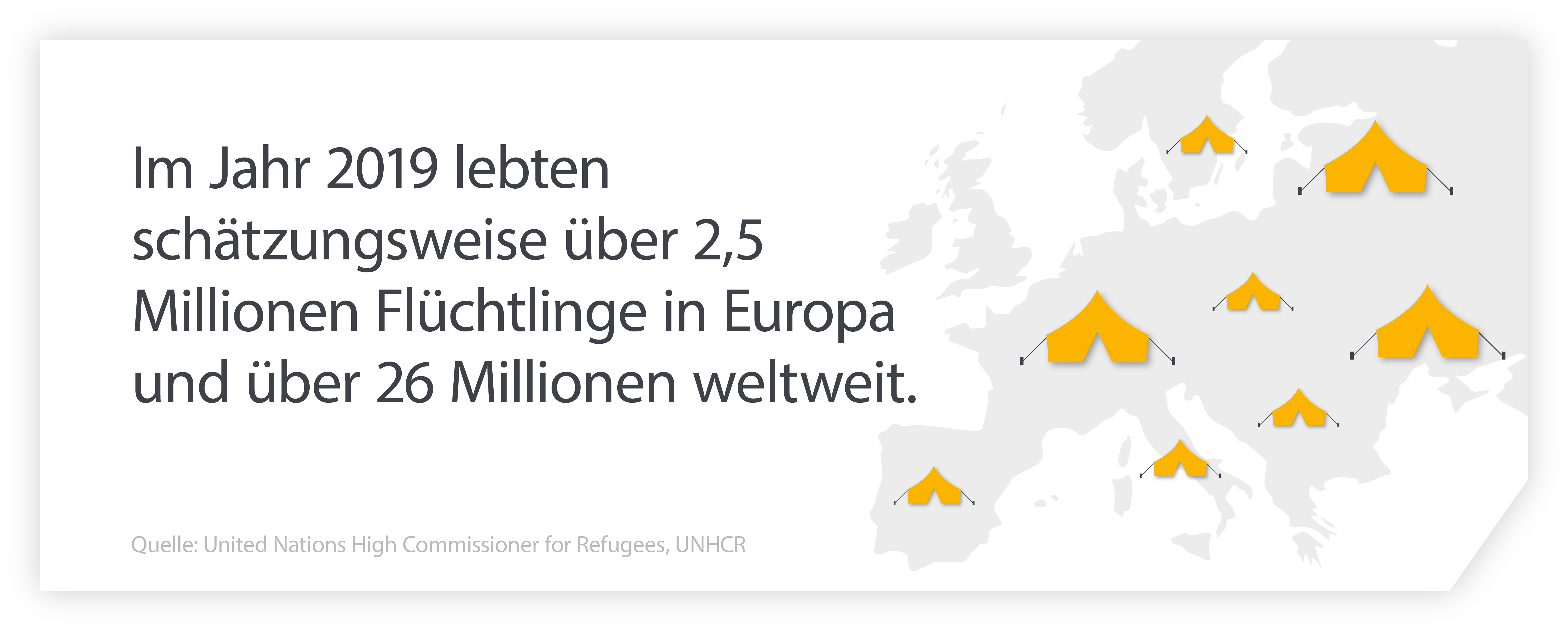 Laut Daten des Hohen Flüchtlingskommissars der Vereinten Nationen (UNHCR) gab es 2019 über 2,5 Millionen Flüchtlinge in Europa und über 26 Millionen weltweit. Allein in Deutschland werden bis Ende des Jahres rund 800.000 Asylbewerber erwartet.