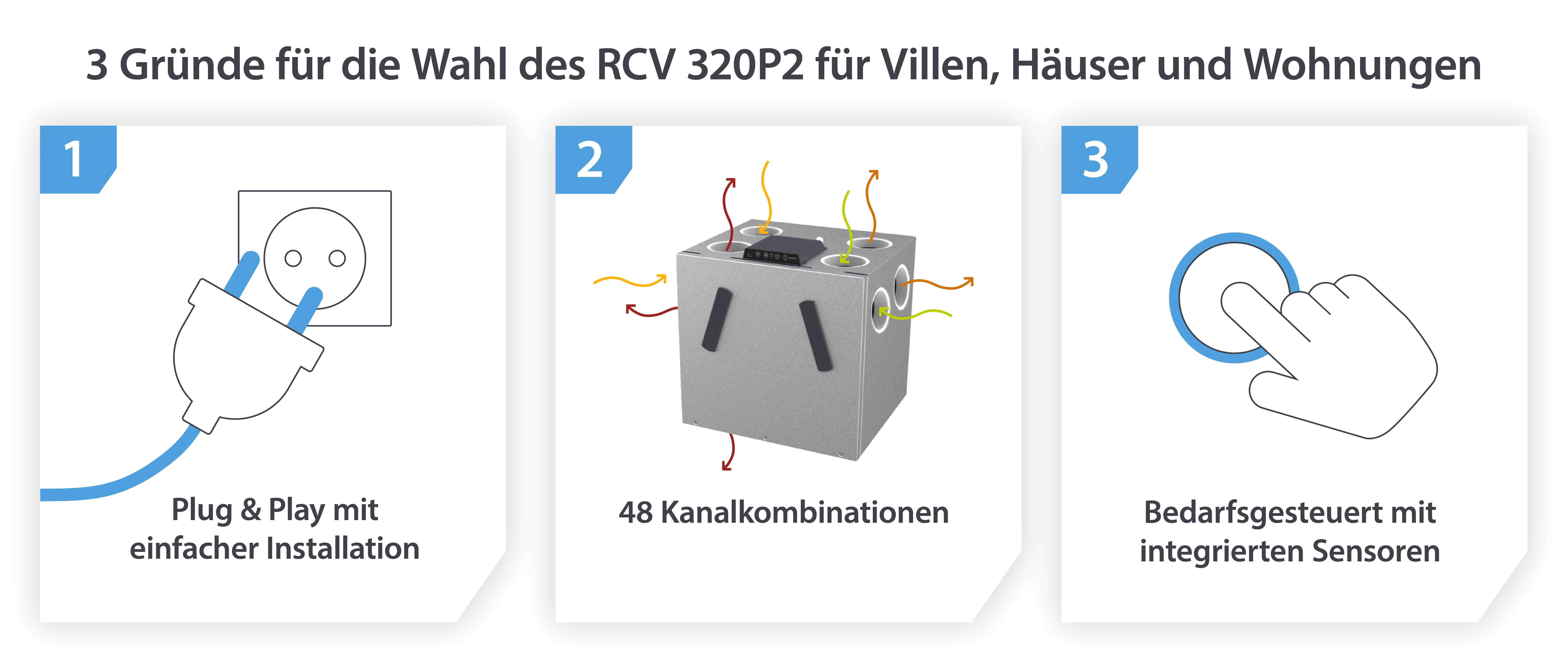 Die Technologie, die im RCV 320 zum Einsatz kommt, gibt es für sich genommen bereits in verschiedenen Produkten. Aber noch nie wurde sie so konzipiert, dass ein so kleines Gerät ein so vielseitiges Angebot für Häuser, Villen und Wohnungen liefern kann. Andere Geräte, die ebenso flexibel sind, sind einfach nicht so kompakt.