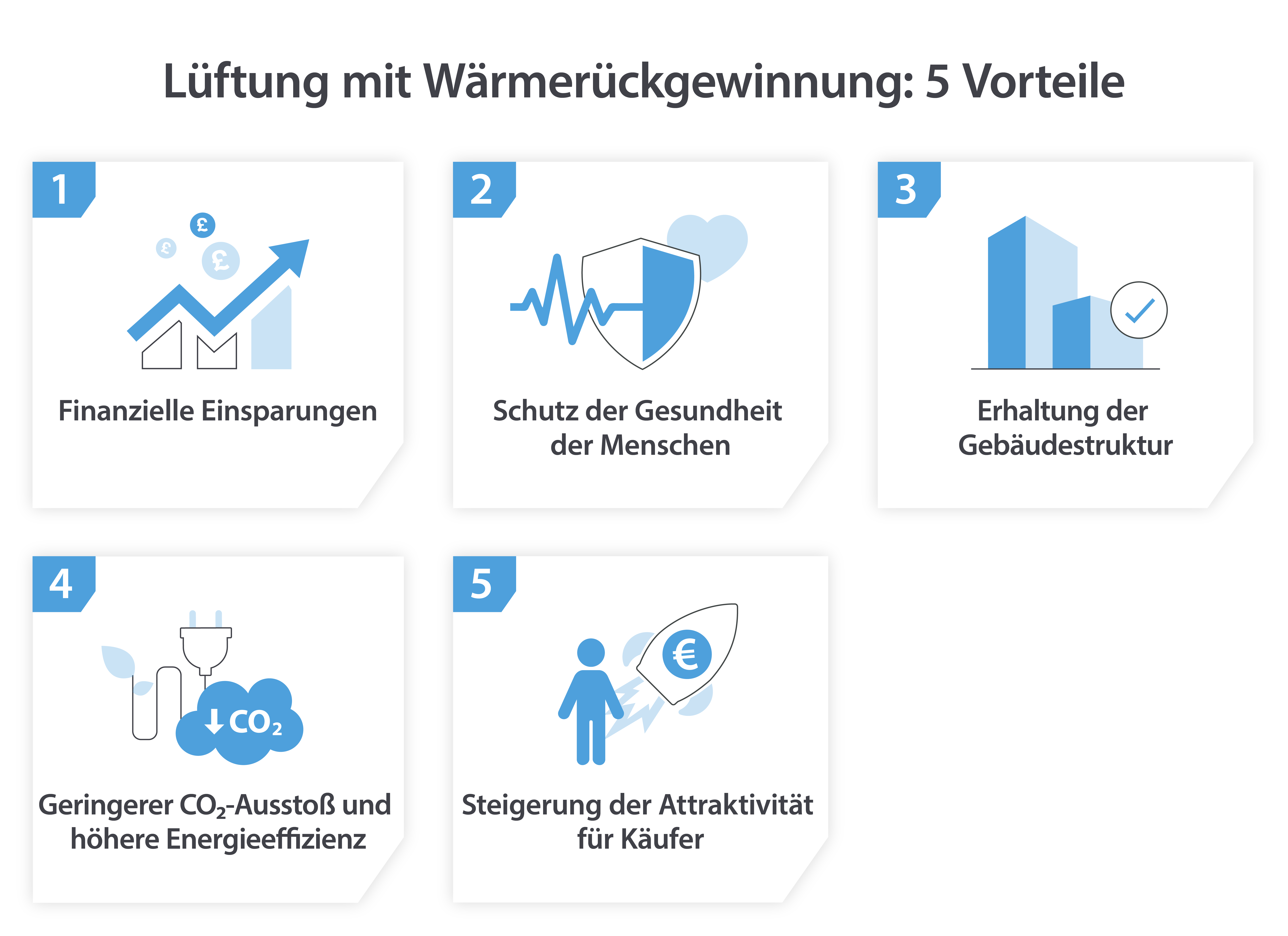 Dies ist besonders wichtig für Eigentümer von Mietobjekten - in Deutschland leben beispielsweise 54 % der Einwohner in Mietwohnungen. Immobilieneigentümer können sich nicht darauf verlassen, dass die Bewohner regelmäßig die Fenster öffnen, um frische Luft in das Gebäude zu lassen, insbesondere im Winter.