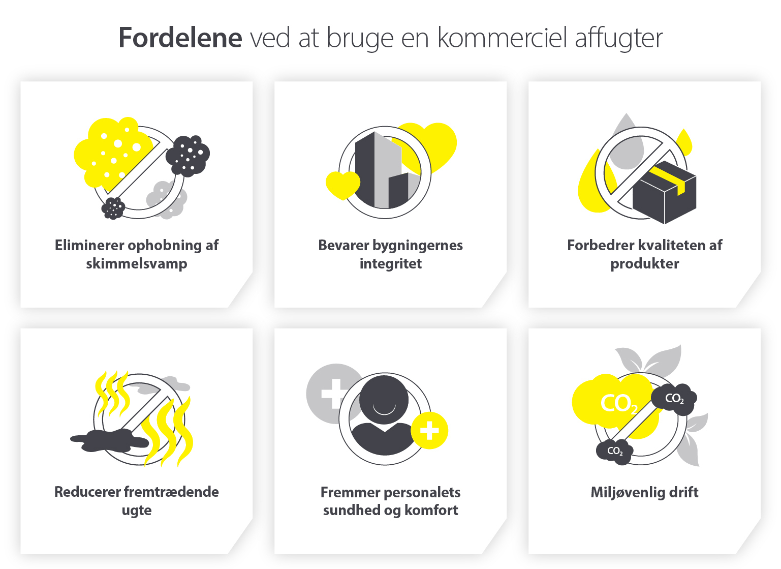 Effektiv affugtning sikrer, at miljøer holdes inden for et sundt fugtighedsniveau, og at fugten fjernes fra uønskede områder. Med de rigtige klimaløsninger på plads er virksomheder i høj grad med til at sikre, at bygninger er sunde, sikre og komfortable, og at genstande indenfor er beskyttet mod risikoen for vandskader.