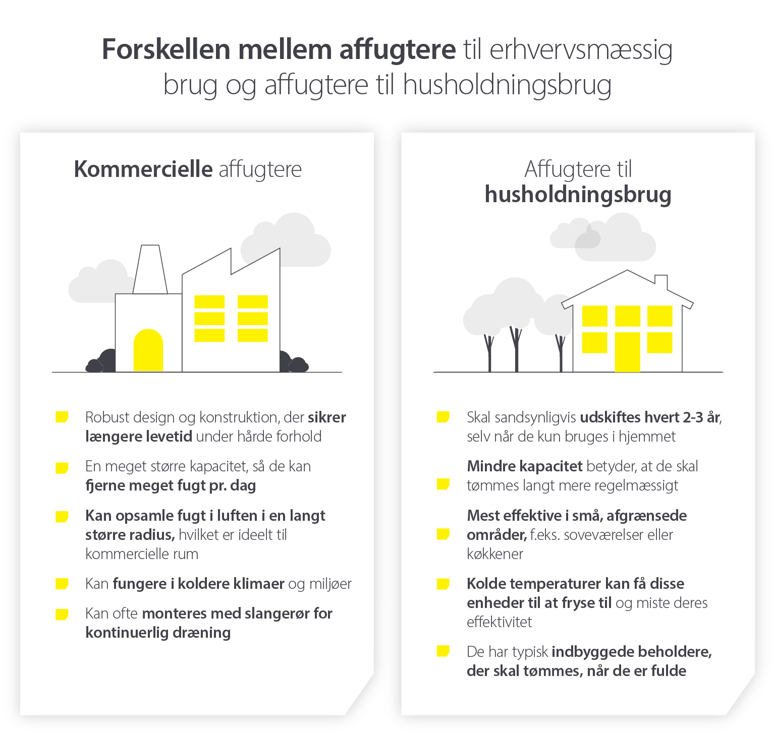 Når du søger efter "affugtere" på nettet, vil du måske straks blive præsenteret for mindre husholdningsversioner. Mens disse kan være perfekt egnet til at forbedre luftkvaliteten og fjerne fugt fra rum i hjemmet, vil de ikke opfylde de langt større krav, der stilles til kommercielle applikationer.