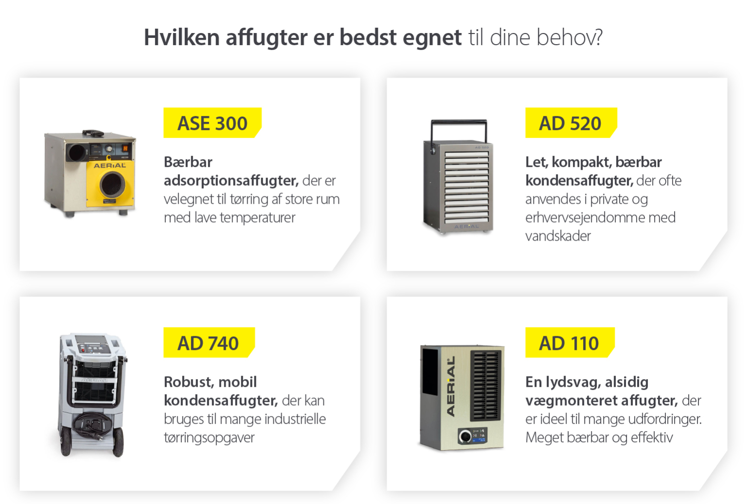 Med årtiers erfaring bag os tager vi alle forholdsregler for at sikre, at du får den rigtige affugter til dine behov.
