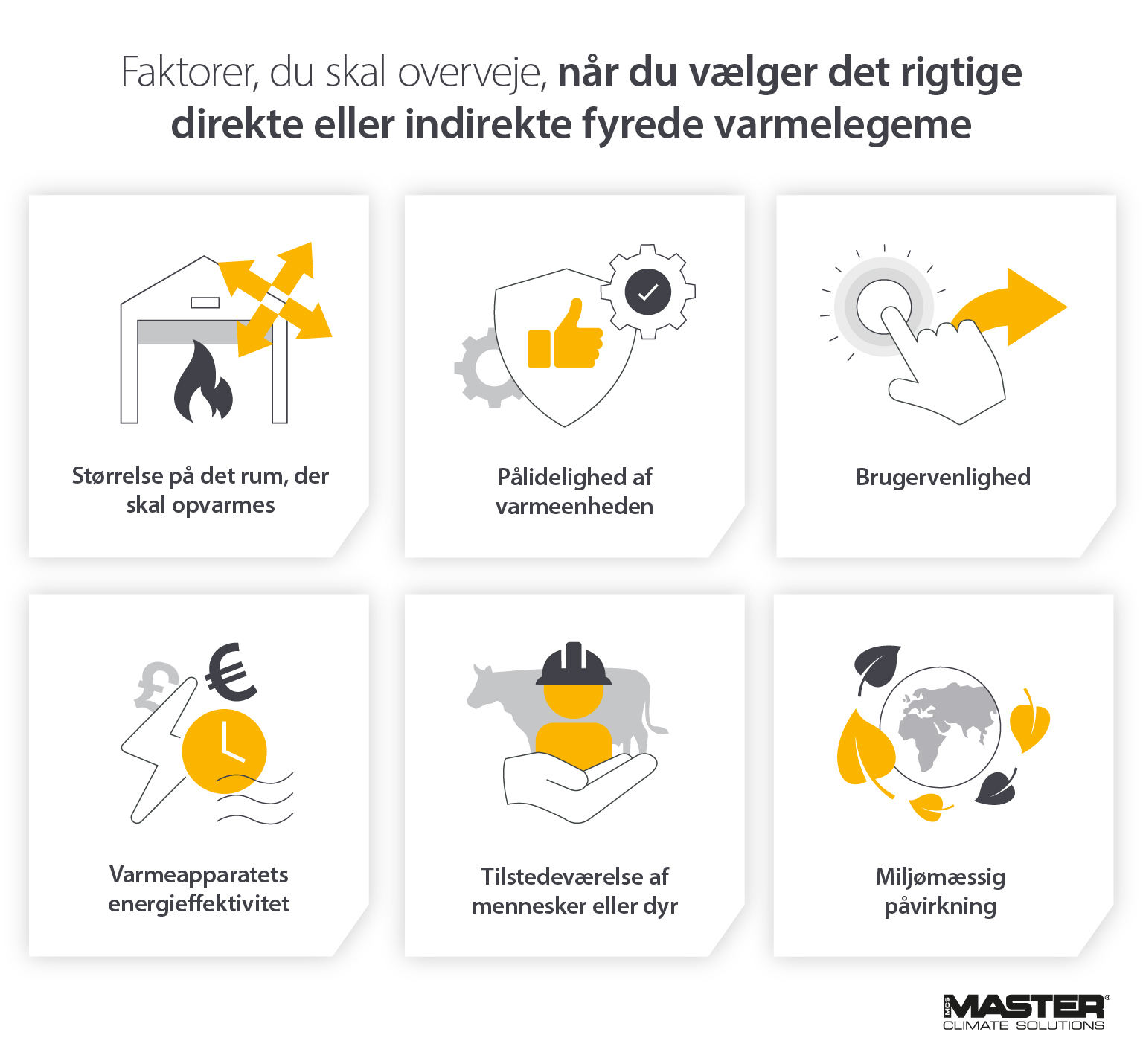 For at hjælpe dig med at træffe en så vigtig beslutning bør du overveje følgende faktorer, når du skal vælge det rette direkte eller indirekte fyrede varmeapparat: