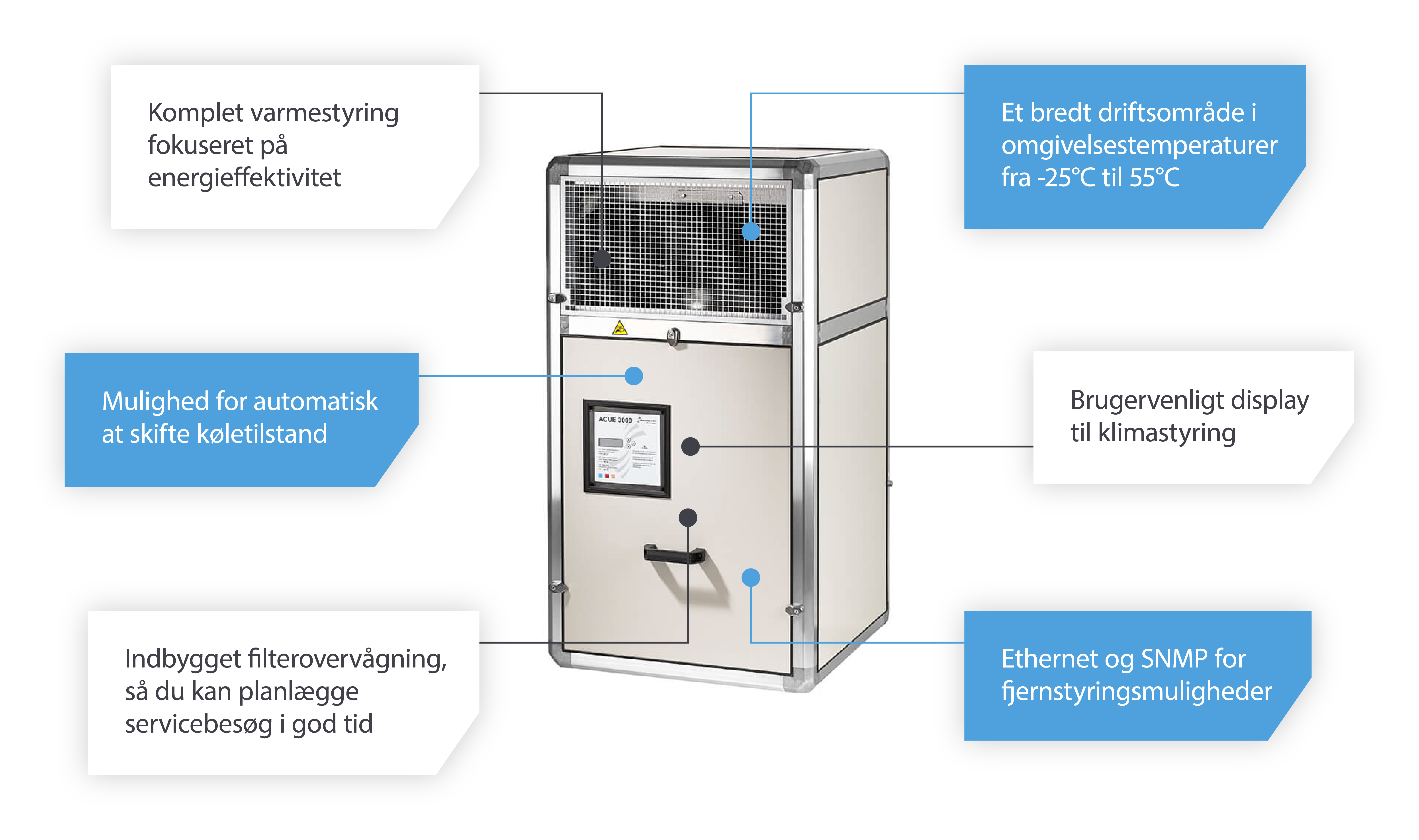 Høj varme er et af de mest udbredte problemer, som datacentre og telekommunikationsvirksomheder kæmper med. Hvis temperaturerne ikke holdes under kontrol, er der stor risiko for, at det følsomme udstyr overophedes, og at der opstår en fejl, hvilket resulterer i mange omkostninger i form af reparationer, udskiftninger og nedetid.