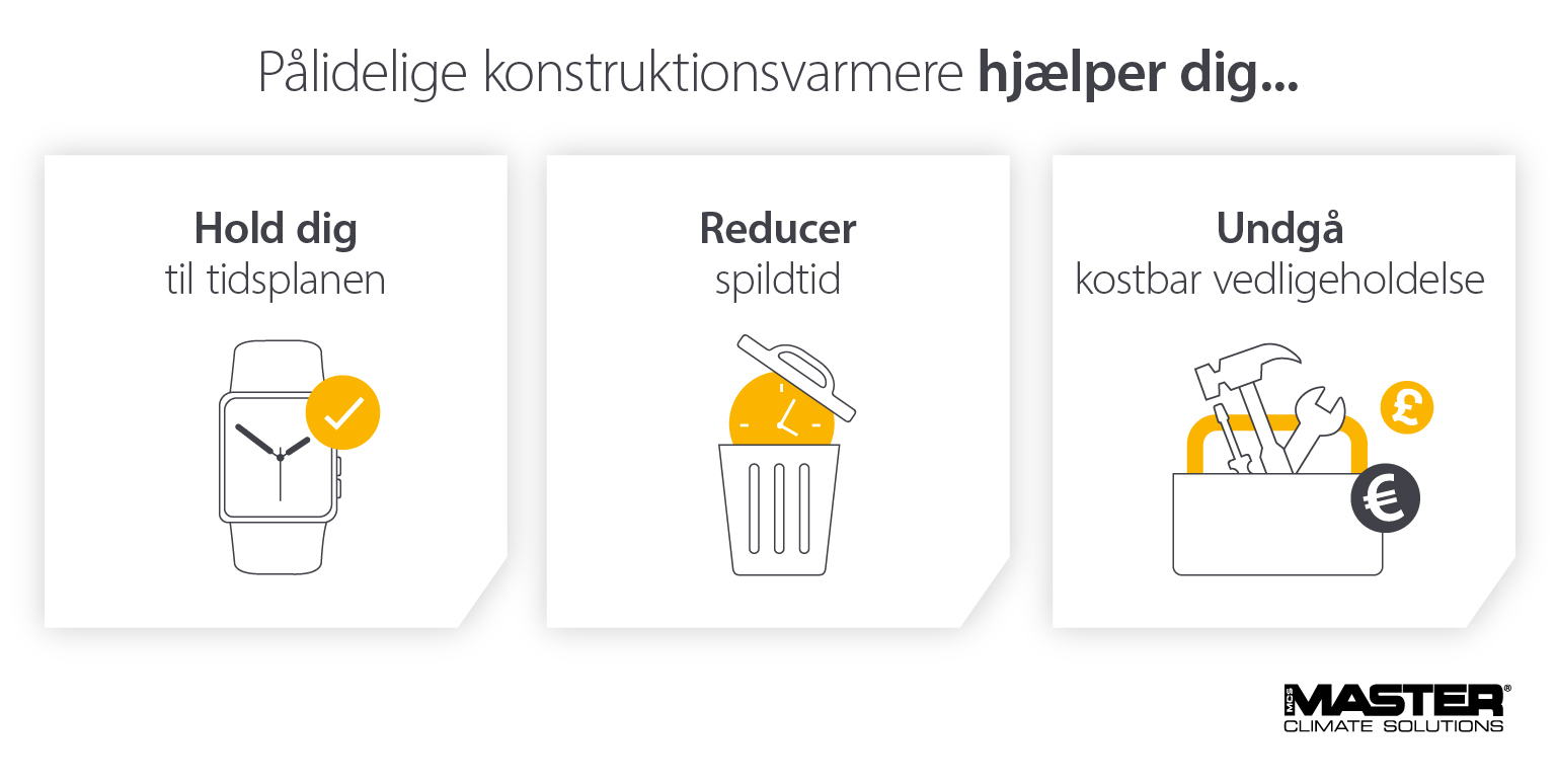 Og selvom vores varmeapparater fungerer i barske byggemiljøer, tilbyder vi stadig 3 års begrænset garanti på alle Master-produkter. Det beskytter vores kunder, hvis der mod forventning skulle opstå problemer med et af vores varmeapparater.