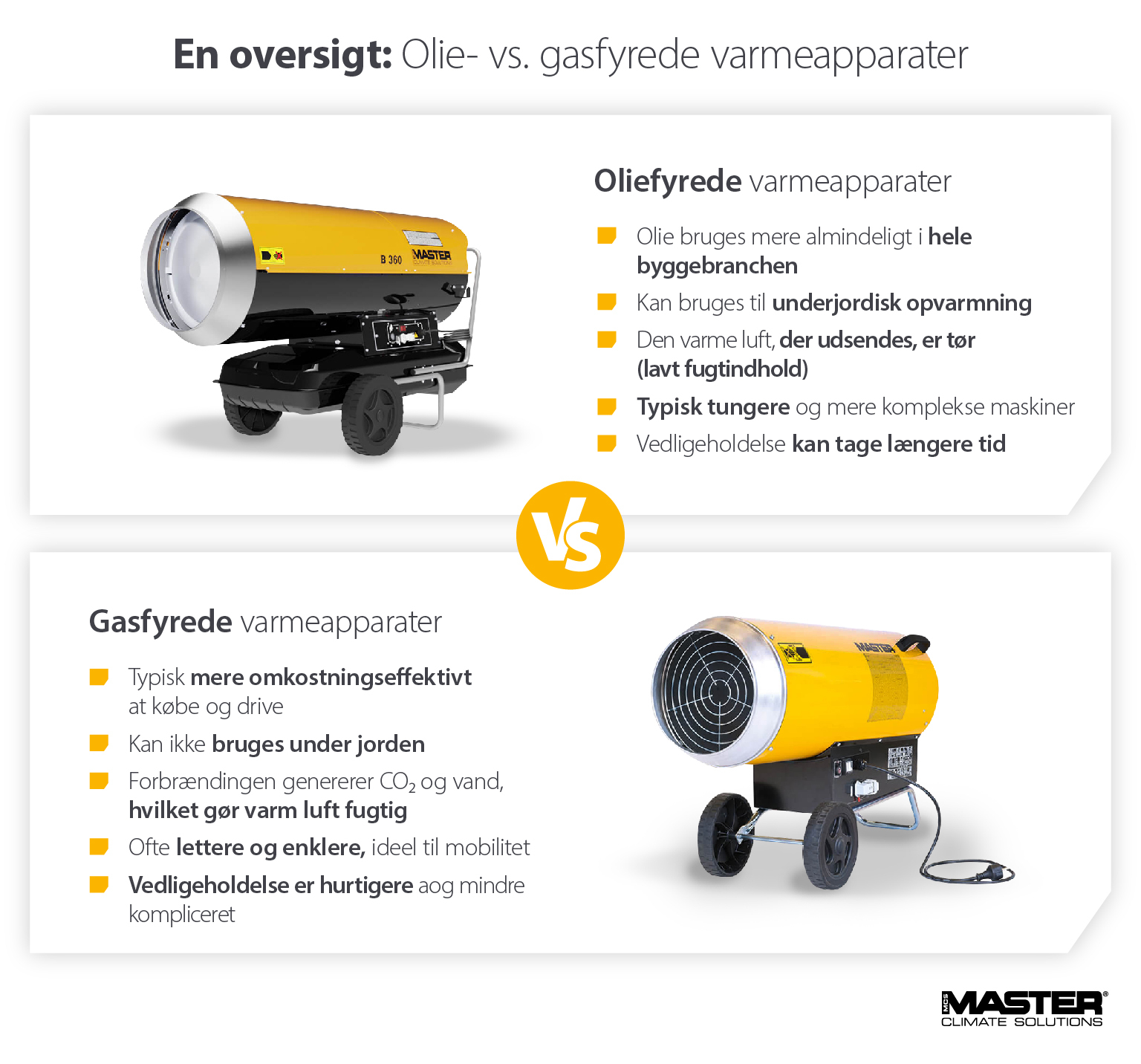 - Oliefyrede vs. gasfyrede transportable varmeapparater til byggepladser