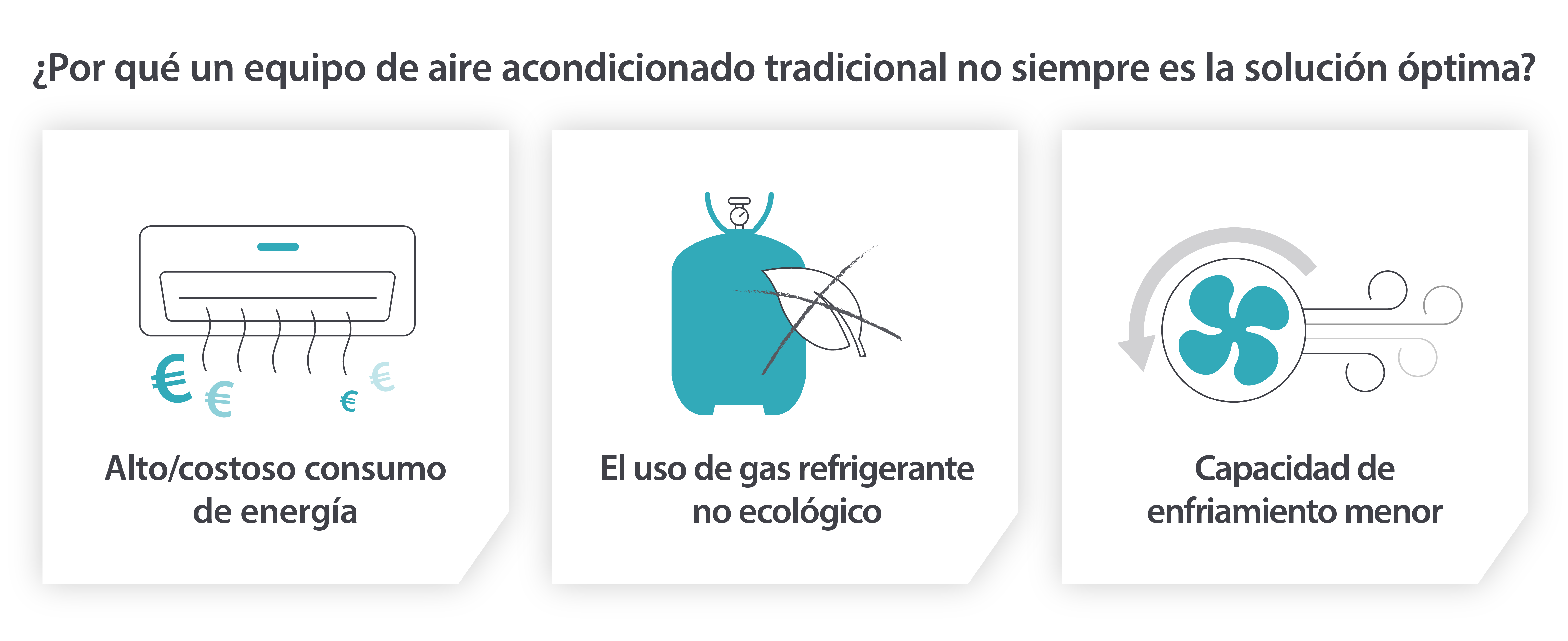 Se sabe que el aire acondicionado es una solución de climatización eficaz y se utiliza en muchos países del mundo. Pero los aparatos de aire acondicionado tradicionales, tal y como los conocemos, ya no son la solución de refrigeración más eficiente desde el punto de vista energético.