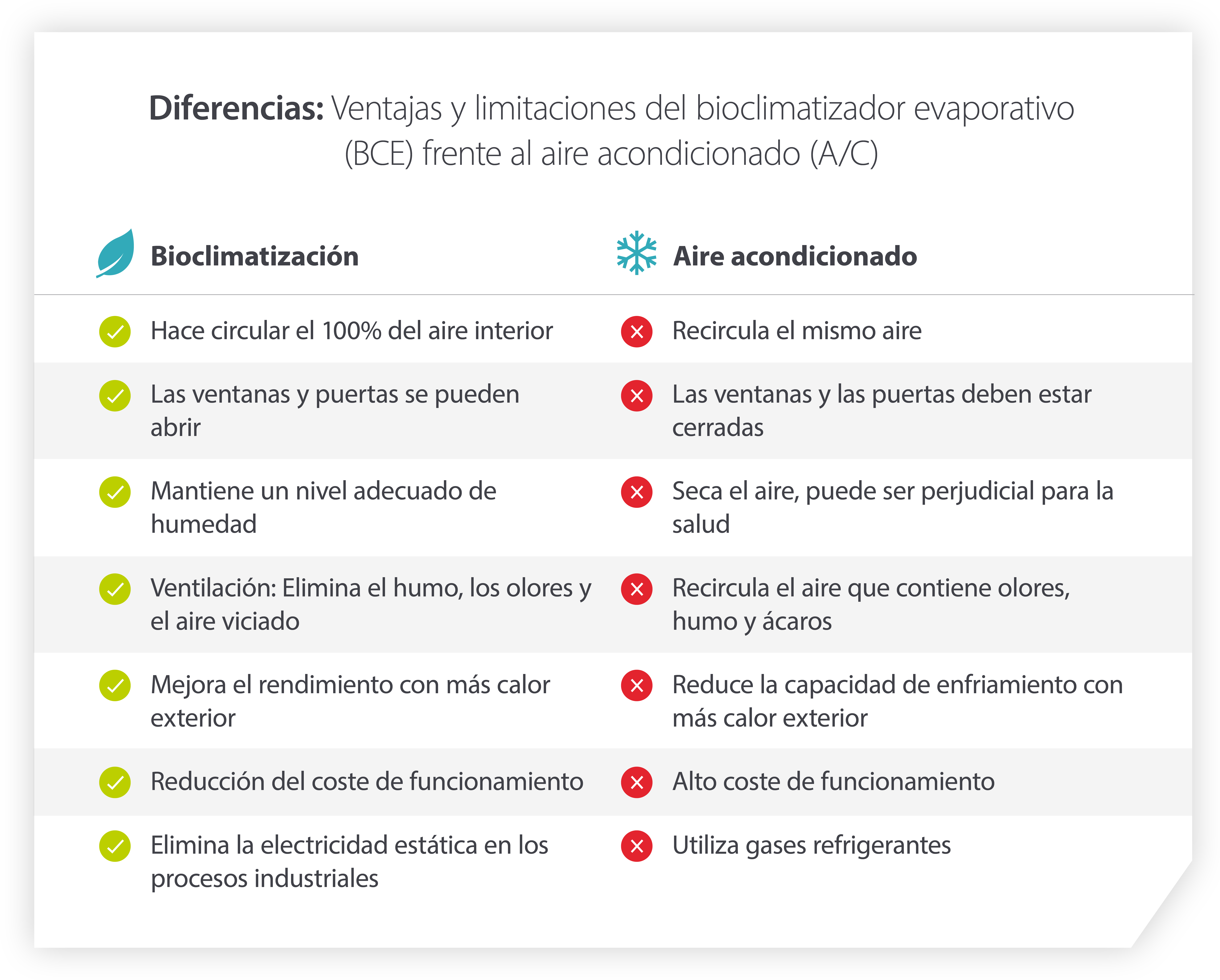 Todos estos problemas pueden resolverse utilizando en su lugar la bioclimatización evaporativa.