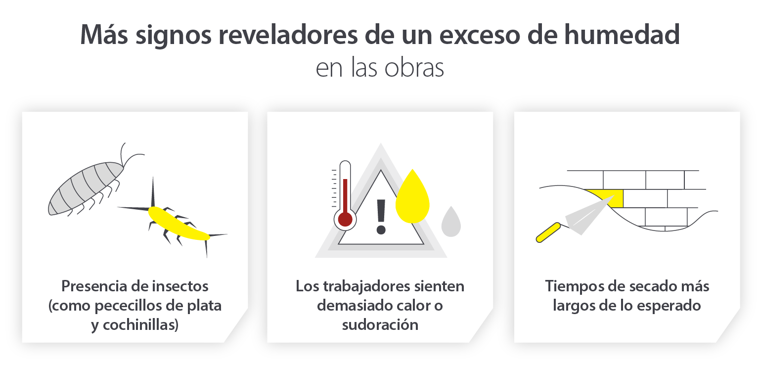 Dado que el exceso de humedad es una amenaza constante para el estado de los materiales de construcción, la velocidad de los procesos y el progreso general de un proyecto, por no mencionar la incomodidad de las personas en las instalaciones, es importante que pueda identificar cualquier señal de alerta.