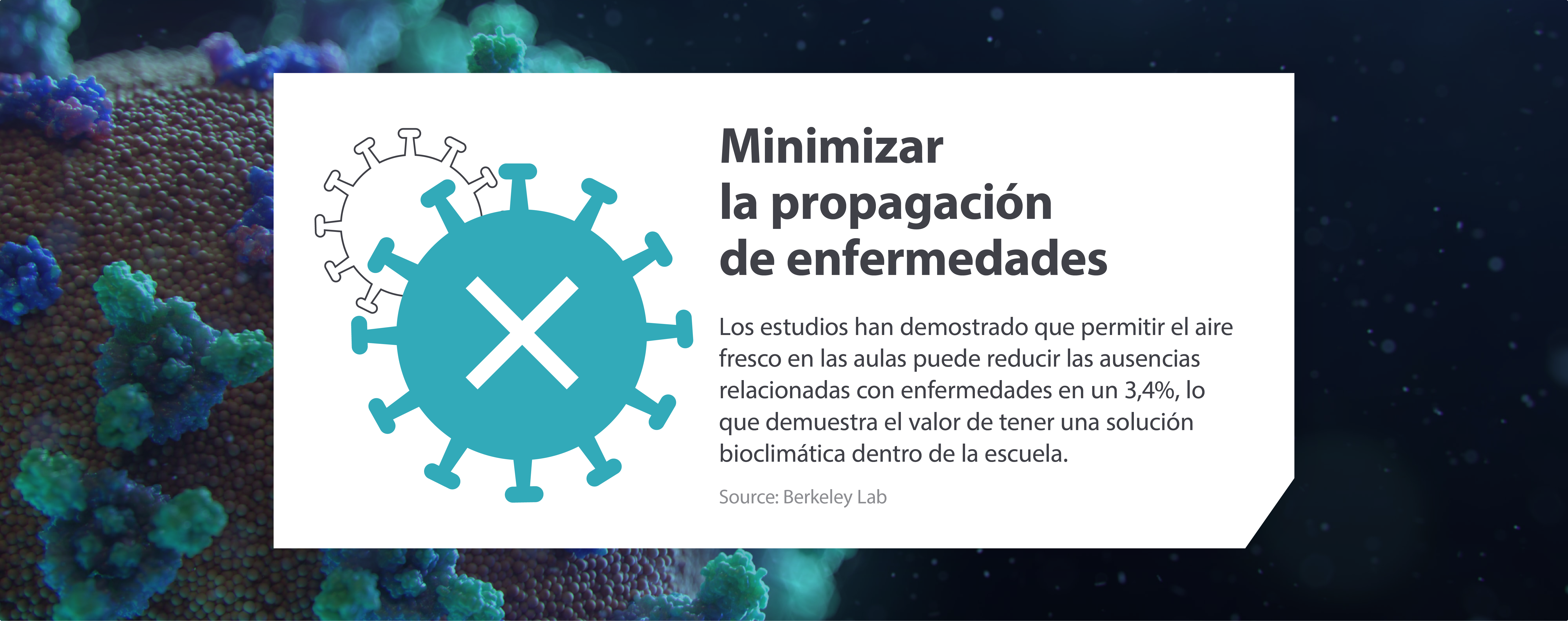 • Los virus y las bacterias transmitidos por el aire pueden permanecer en el espacio durante varias horas, lo que aumenta el riesgo de que se propaguen enfermedades entre los estudiantes y el personal