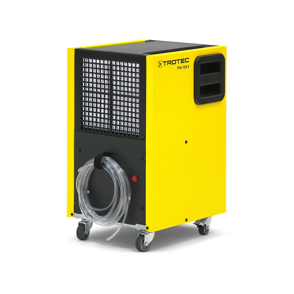El deshumidificador comercial TTK 125 S es una solución de secado potente y compacta. Combina características de diseño avanzadas con una construcción robusta y un rendimiento eficaz. Tiene un diseño de bajo mantenimiento para facilitar la limpieza y ofrece una gran capacidad de deshumidificación, gracias a su compresor rotativo de 0,58 kW. La unidad incorpora un sistema automático de descongelación por gas caliente para mantenerla operativa a bajas temperaturas.Con un peso sólo de 26 kg , puede deshumidificar la impresionante cantidad de 28 litros en 24 horas. El TTK 125 S está diseñado para facilitar su manejo con asas ergonómicas y ruedas giratorias, y puede apilarse para ahorrar espacio de almacenamiento. También incluye un contador de horas de funcionamiento y varias funciones de protección.