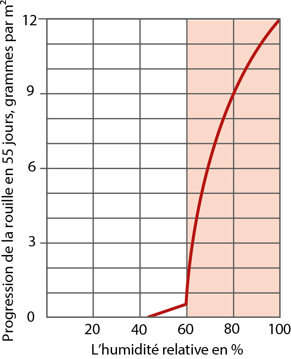 Lorsque l’humidité relative atteint ou dépasse 60 %, la vitesse de corrosion de l’acier augmente rapidement.