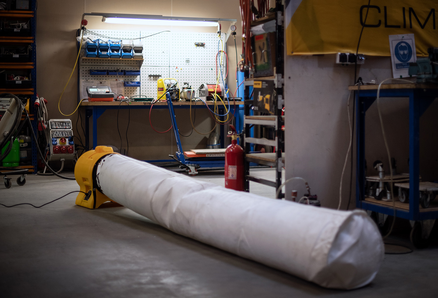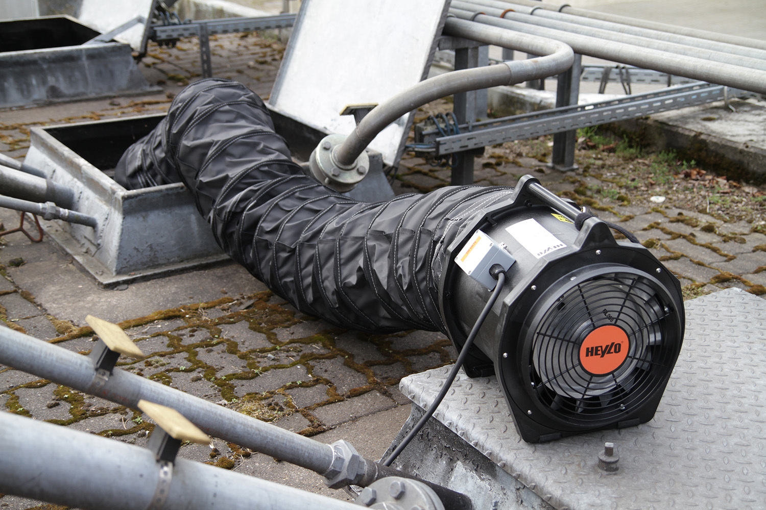 Les processus de séchage des bâtiments et des dégâts des eaux sont améliorés et peuvent être menés à bien plus rapidement grâce à l'utilisation de ventilateurs et extracteurs, qui permettent d'évacuer plus rapidement l'air humide de la zone d'application.