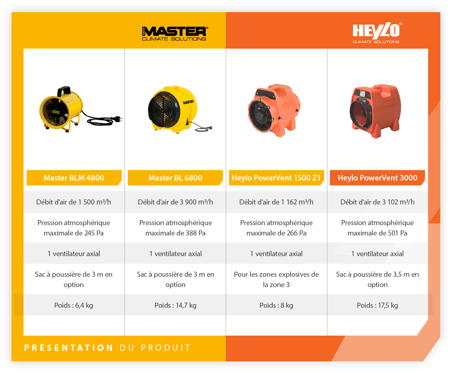 - Choisir le bon appareil pour le travail à effectuer : Il existe différents types de ventilateurs et extracteurs, notamment axiaux ou centrifuges. Choisissez un ventilateur adapté à la taille de la zone de travail et au type de ventilation requis.