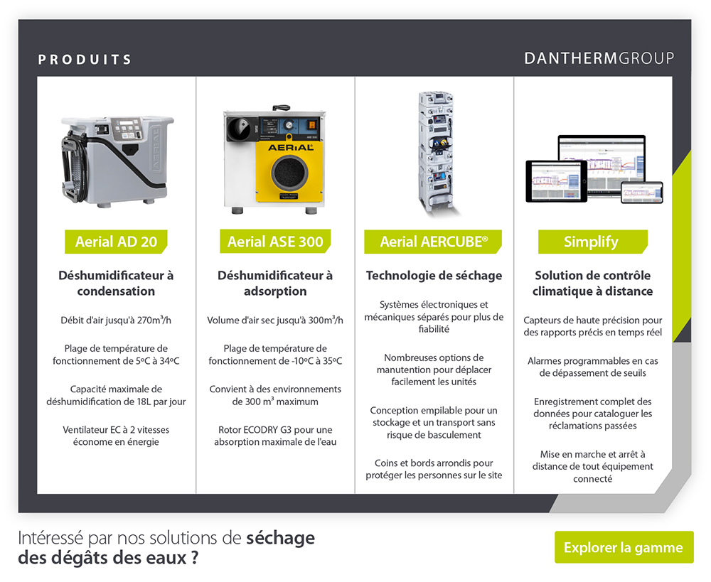 Contactez un expert dès aujourd’hui en utilisant le formulaire ci-dessous, ou explorez notre gamme de déshumidificateurs ici.