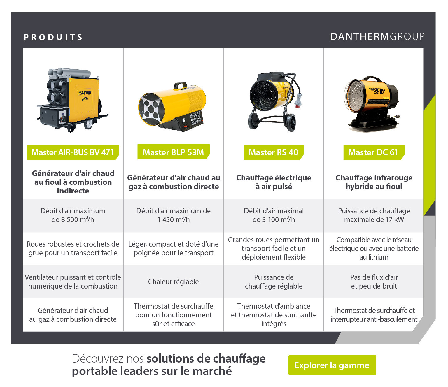 Avec un héritage de contrôle climatique remontant à 1954, Dantherm Group est le leader européen des appareils de chauffage portables efficaces, durables et résistants.