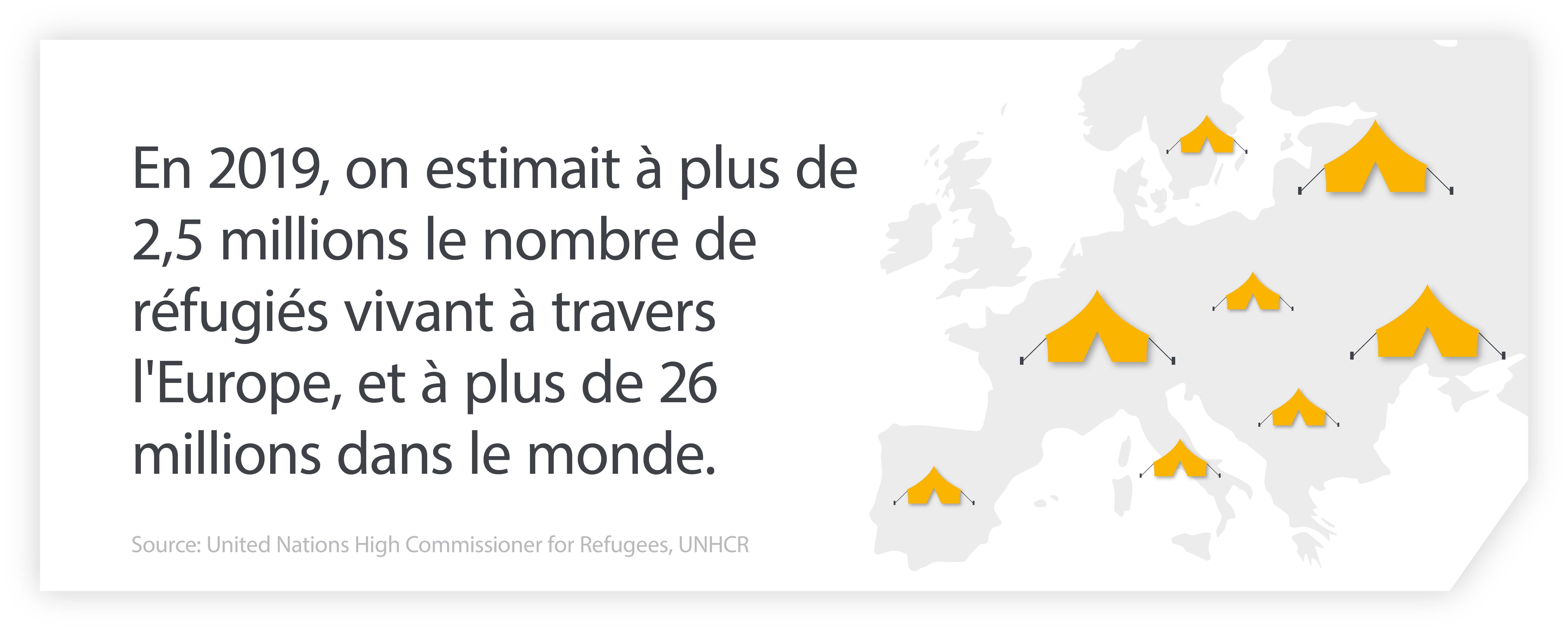 Selon les données du Haut-Commissariat des Nations Unies pour les réfugiés (HCR), en 2019, l'on dénombrait plus de 2,5 millions de réfugiés basés en Europe et plus de 26 millions dans le monde. Rien qu’en Allemagne, environ 800 000 demandeurs d'asile sont attendus d’ici la fin de l’année.