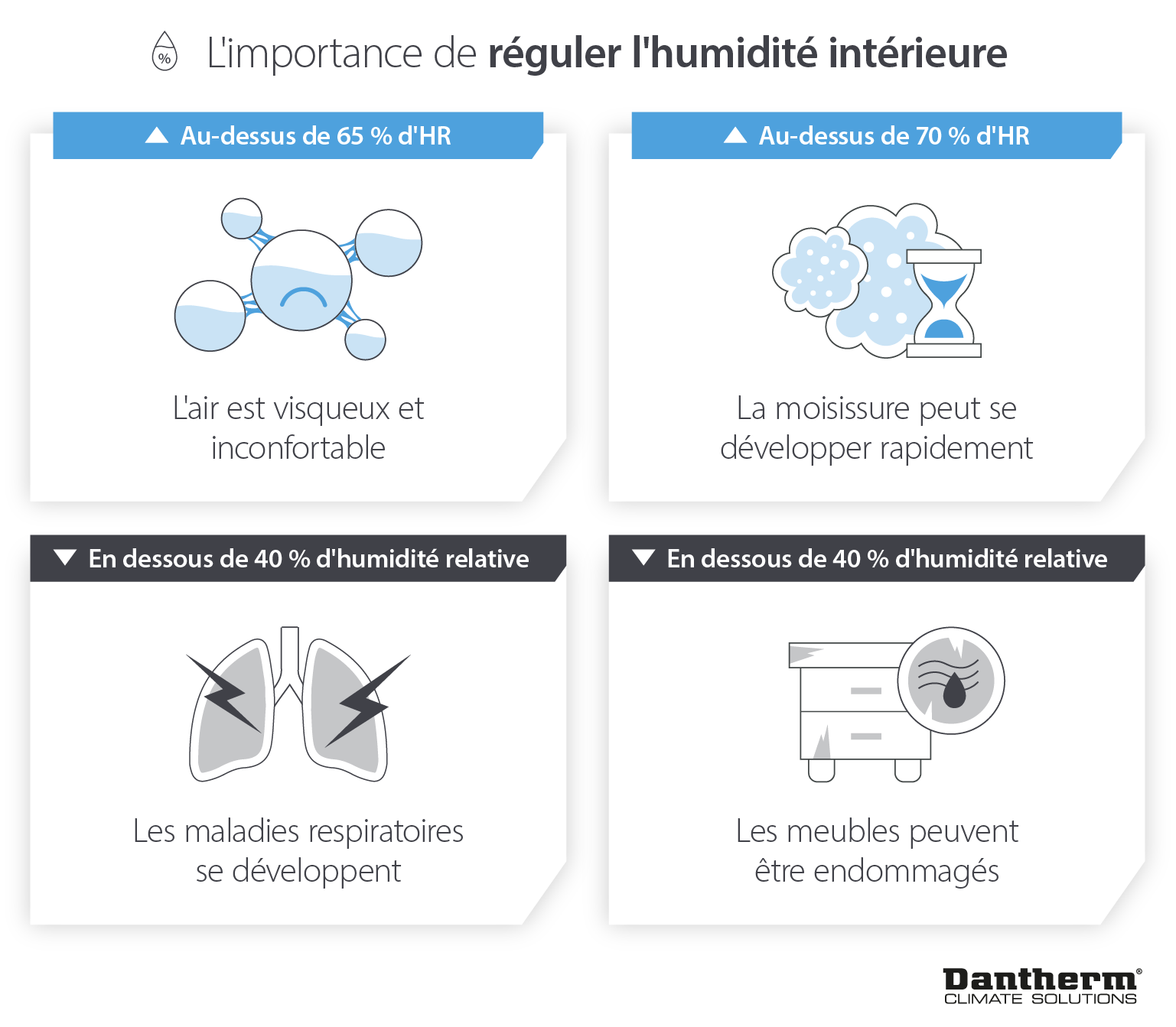 Par exemple, dans un climat sec, les systèmes mécaniques peuvent être équipés d'échangeurs de chaleur enthalpique qui récupèrent l'humidité ainsi que la chaleur, créant ainsi des conditions idéales sans qu'il soit nécessaire de faire fonctionner un humidificateur séparé.