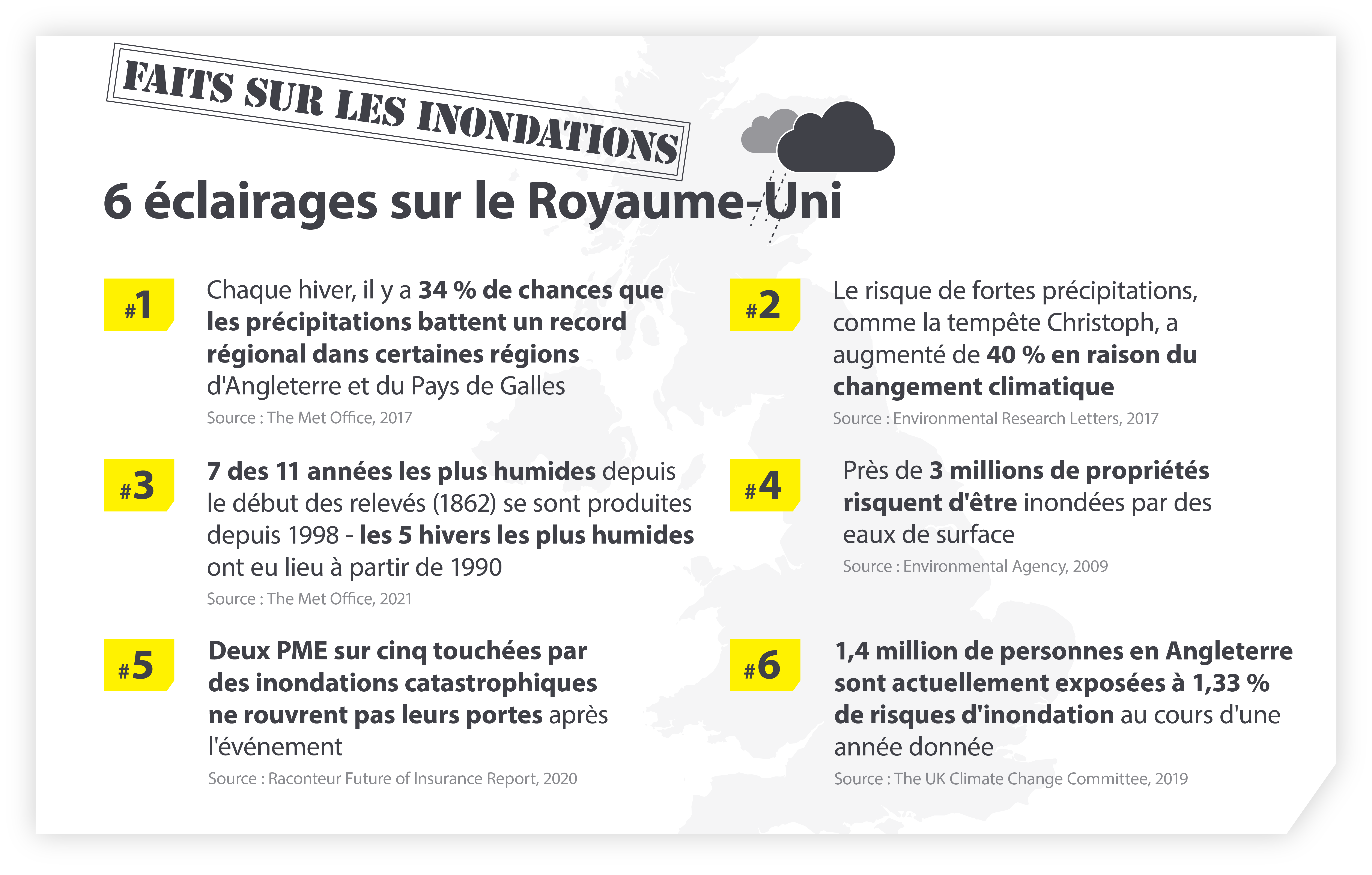 Ces données montrent clairement que le risque d’inondations est aujourd’hui plus fréquent qu’au cours des dernières décennies. Le Royaume-Uni n’est pas le seul pays concerné, d’autres régions d’Europe et du monde sont également touchées.