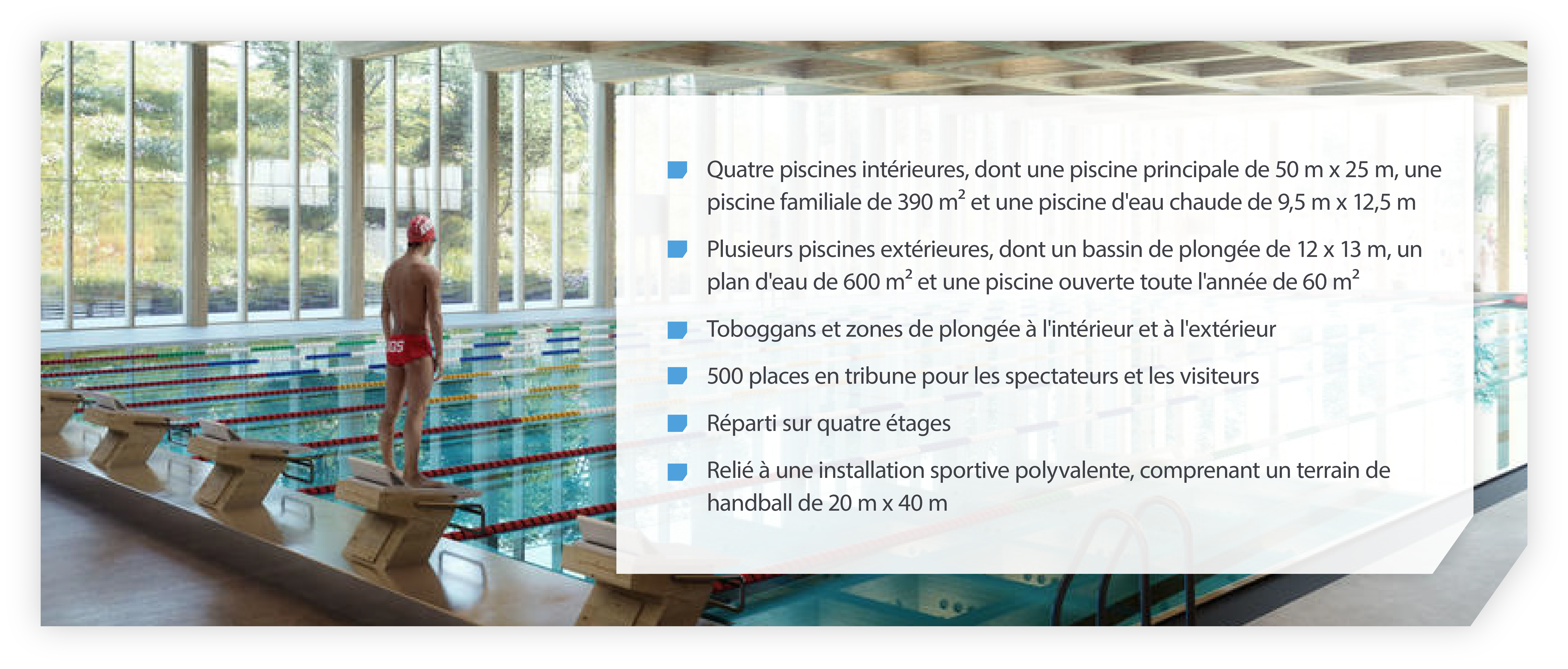 De plus, la chaleur générée par cette solution pourrait ensuite être réutilisée afin de chauffer les piscines dans tout le bâtiment, ainsi que l’air sec qui est renvoyé dans les installations, en maintenant une température optimale comprise entre 30 et 34 °C à tout moment.