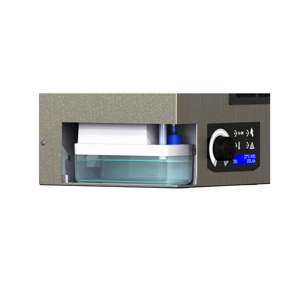 Equipé d'un support pour un montage mural simple et rapide, il est idéal pour les installations de gestion de l'eau, le stockage des voitures, la préservation, les musées, les salles d'archive, les caves, les spas et l'usage domestique.