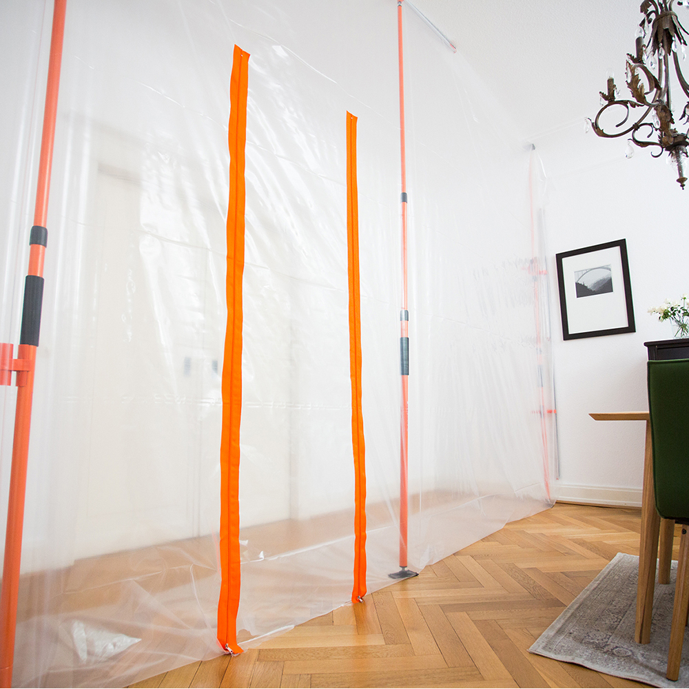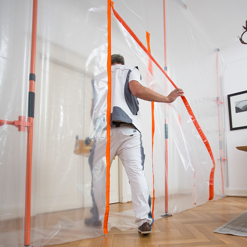Vous avez besoin d'une protection rapide et flexible contre la poussière lors de travaux de rénovation ? Sans devoir masquer et recouvrir les portes, les fenêtres et les meubles ? Le mur de protection contre la poussière HEYWALL garantit la propreté des locaux pendant les travaux de rénovation et évite les nettoyages ultérieurs fastidieux. Le système intelligent de protection contre la poussière pour les pièces partielles.