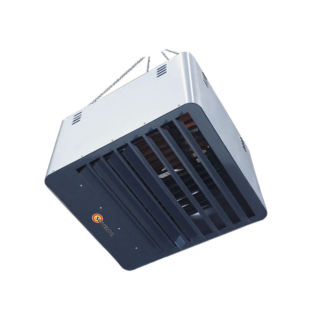 Silencieux, compact et discret, ne réclamant ni cheminée ni stockage de combustible, sans flamme et hors de portée du public ou du personnel, il convient parfaitement pour chauffer des volumes de grandes hauteurs tels que les chapiteaux, les magasins, les restaurants, les locaux de stockage, les halls d’expositions, les ateliers.
