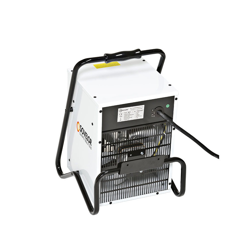 Les aérothermes la gamme B sont livrés entièrement montés et prêts à l’emploi. Ils sont équipés en série d’un câble électrique avec prise de raccordement mobile (230 V monophasé ou 380 V triphasé selon les modèles) évitant ainsi à l’utilisateur la recherche fastidieuse et coûteuse de câbles et prises électriques adaptées.