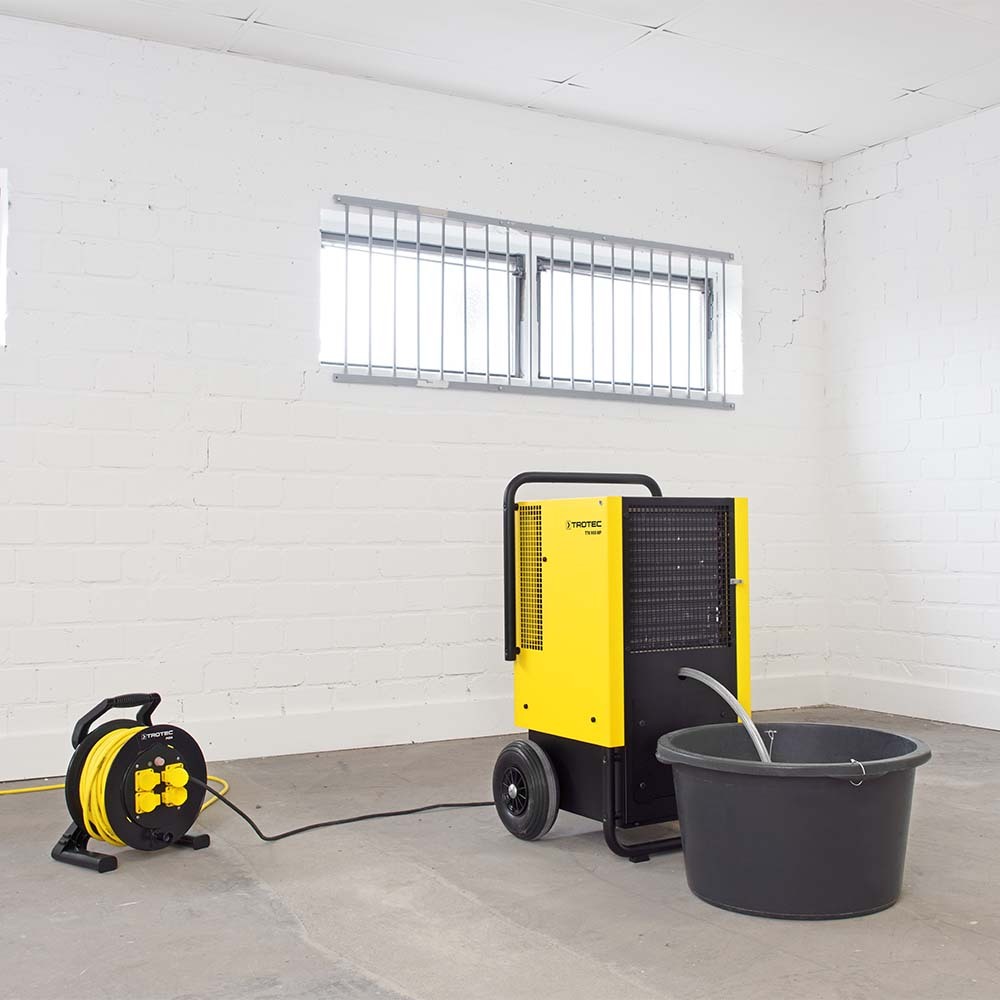 Le TTK 900 MP est un déshumidificateur très puissant capable de déshumidifier jusqu'à 110 litres par jour. Conçu pour le séchage des constructions et la restauration après dégâts des eaux, il est équipé d'un compresseur à rotation efficace et d'un ventilateur à haute pression. Pour distribuer rapidement l'air déshumidifié, l'appareil est équipé de sorties des deux côtés. Il est équipé de série de roues en caoutchouc pratiques et d'une poignée de poussée réglable pour une mobilité optimale. La technologie VarioDry vous permet de sélectionner des modes préprogrammés pour le séchage des chantiers ou après dégâts des eaux.