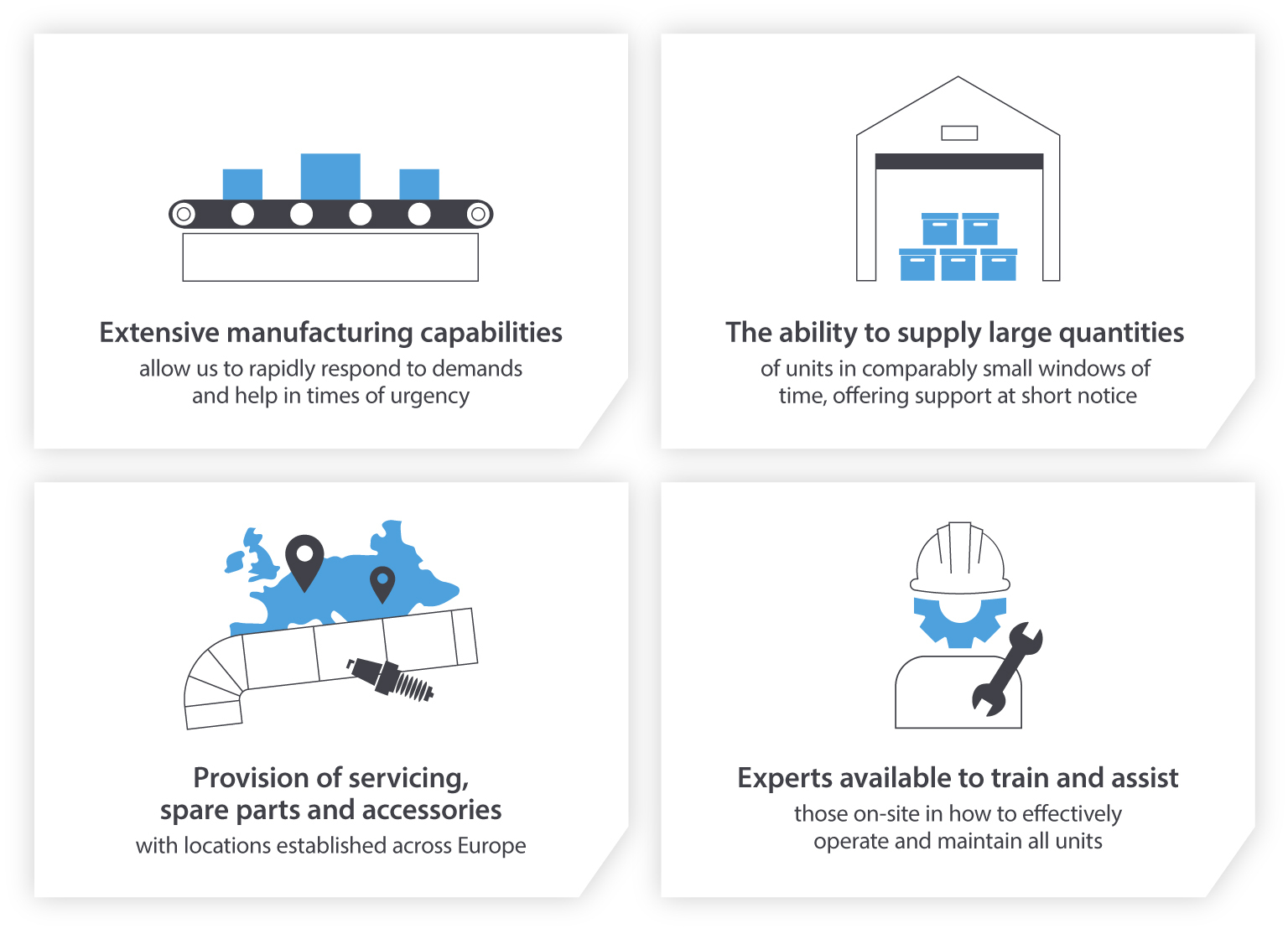 To understand why manufacturers such as LANCO, ALL and Equipos MD trust Dantherm to meet their heating and cooling requirements, here we outline how our products fulfil the biggest requirements for refugee camps and other emergency accommodation.