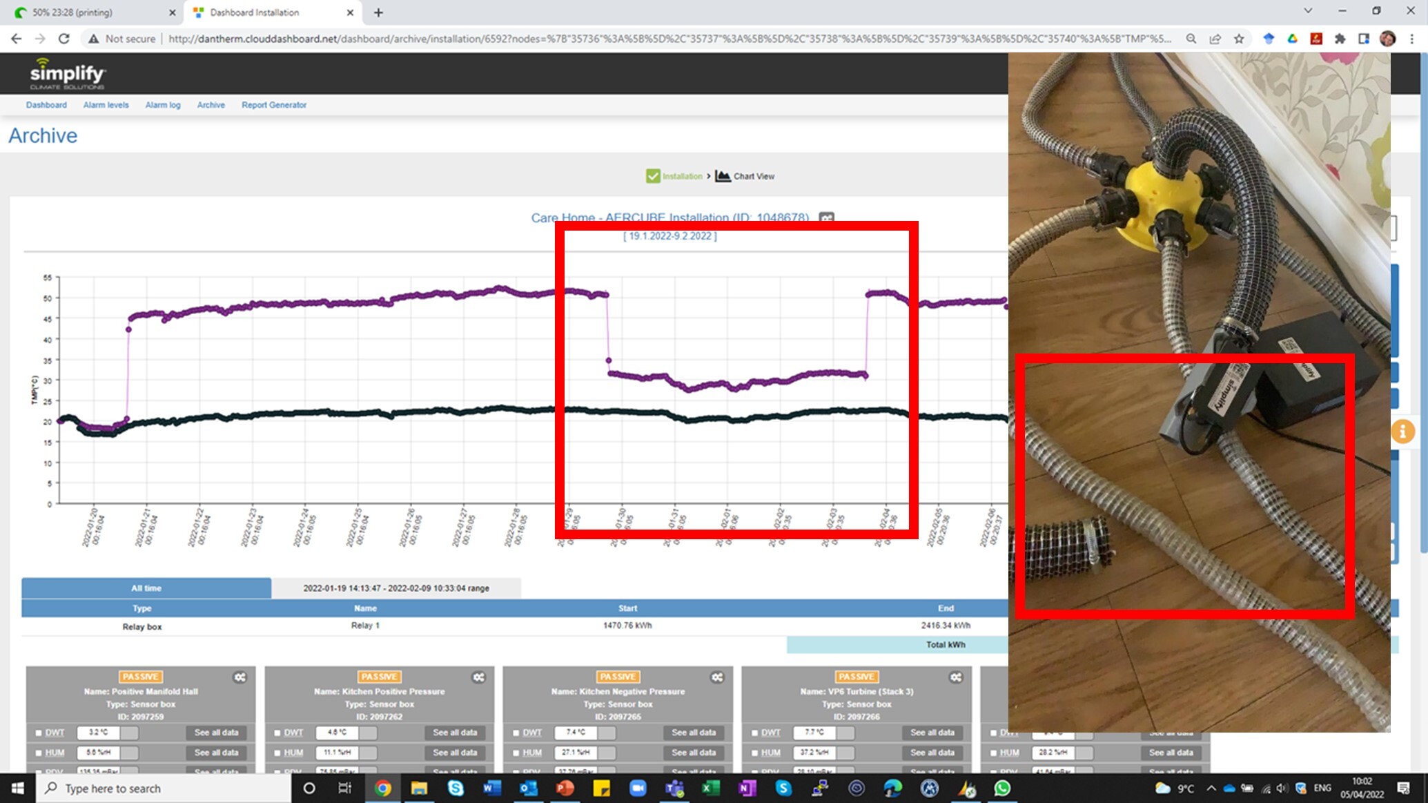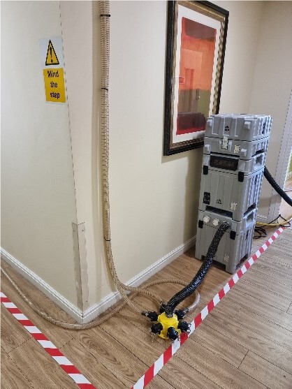 The remote monitoring system proved invaluable when a connection hose was accidentally moved during the drying process, rendering part of the system ineffective. The monitoring system quickly identified the issue, allowing a contractor to promptly correct the problem with an onsite visit, minimising downtime and project disruptions.
