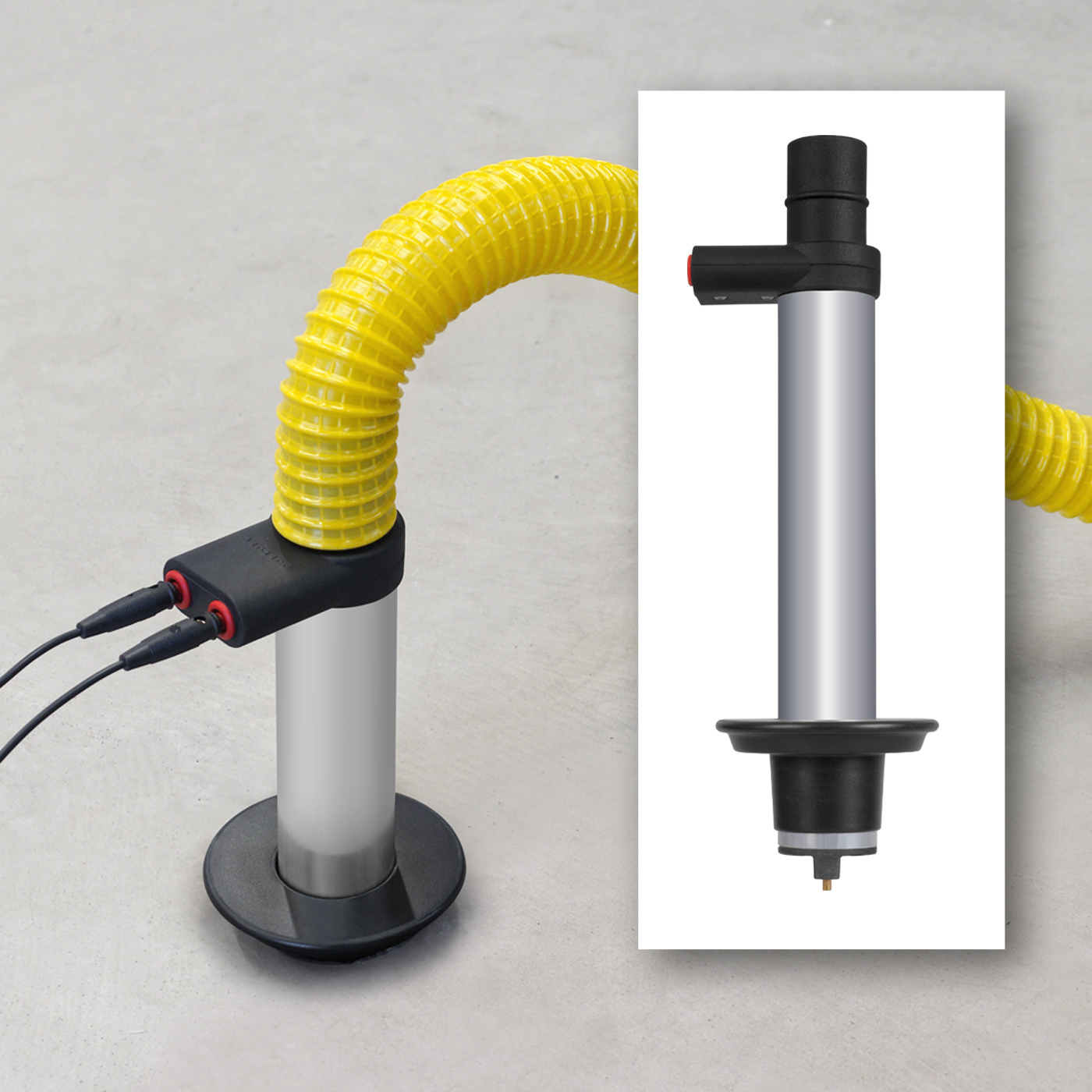 Le aziende di ripristino dei danni da acqua possono installare questa sonda al posto di un ugello di aspirazione standard. La sonda viene inserita nel foro di carotaggio del massetto utilizzando il collare di perforazione. Successivamente, viene collegato un tubo per estrarre l’aria umida.