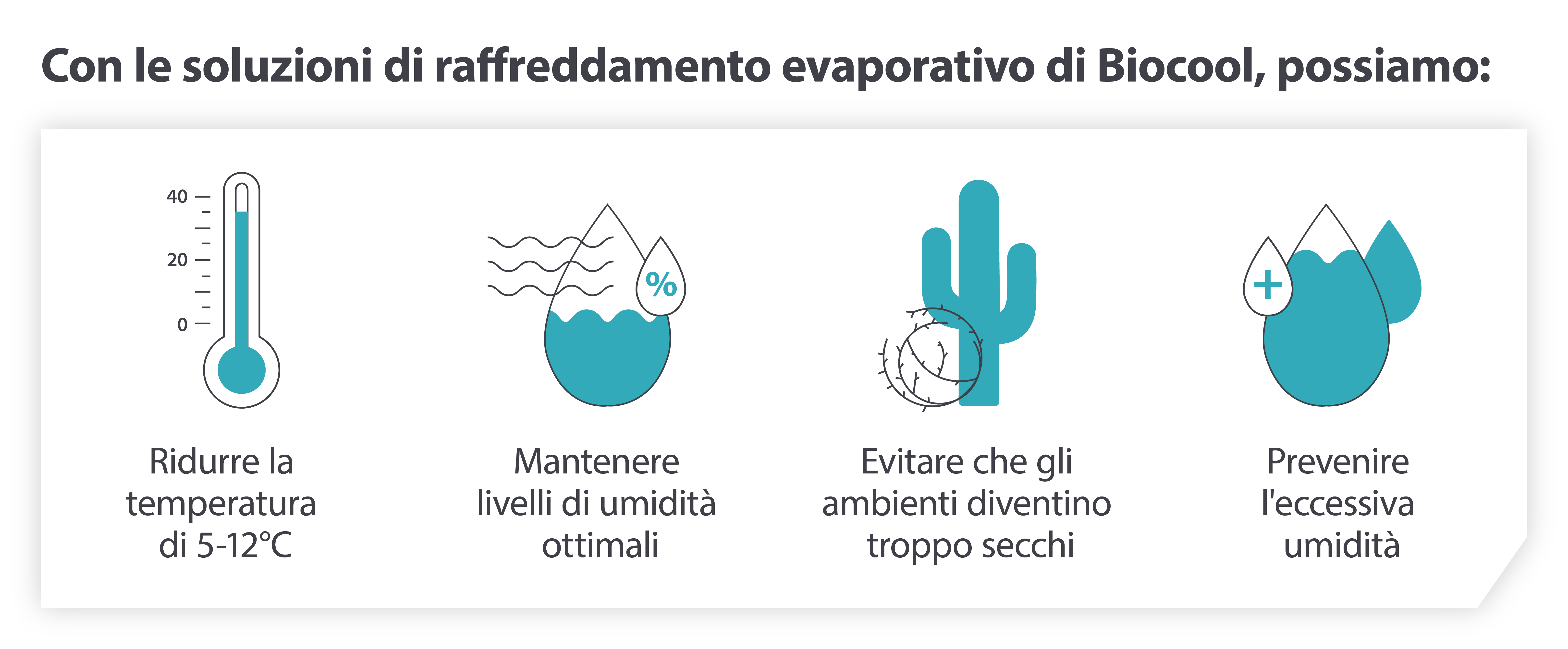 Questo esempio mostra chiaramente come le soluzioni di raffrescamento evaporativo di Biocool non solo si dimostrino più flessibili e attente alla salute rispetto agli altri sistemi, ma anche molto più efficienti e convenienti.